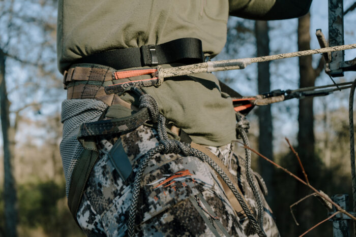 The AmSteel bridge adjusts easily but maintains a snug fit, which allows you to set it in the most comfortable position or height for your tree tether. The bridge also adjusts easily in the carabiner when you need to adjust for shots, especially when you have deer sneak in behind you. Lineman’s loops on both sides of the saddle also maintained their position instead of sagging while I climbed trees.