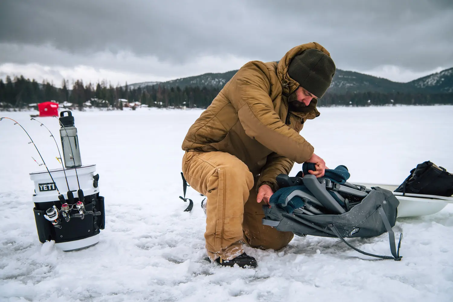 Packed up and in its carry bag, the chair is fairly compact. It makes it an easy choice to bring along while packing for a trip. It easily stows in a crowded truck bed, a gear hatch in an RV, or even in an ice sled. For those destinations a little bit farther from the truck, the backpack-style carry bag makes transport easier, but it’s no cakewalk.