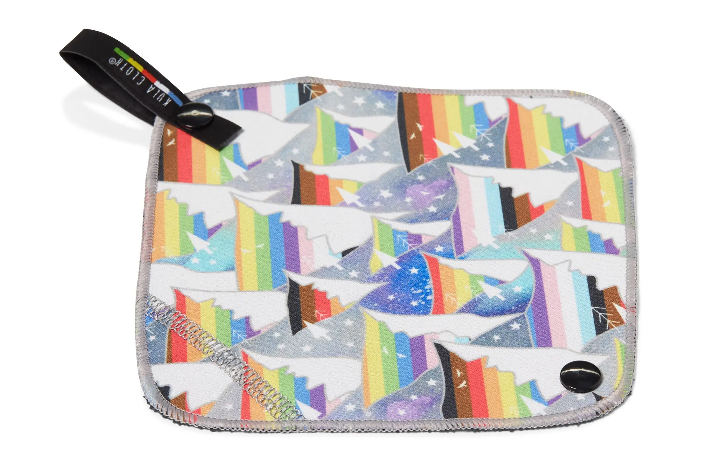 The Kula Cloth is a multilayered square. One side is printed waterproof fabric. The side used for wiping is a black, dimpled fabric infused with antimicrobial silver. According to the company, this silver ion treatment is environmentally friendly and will not release silver particles into the environment.
