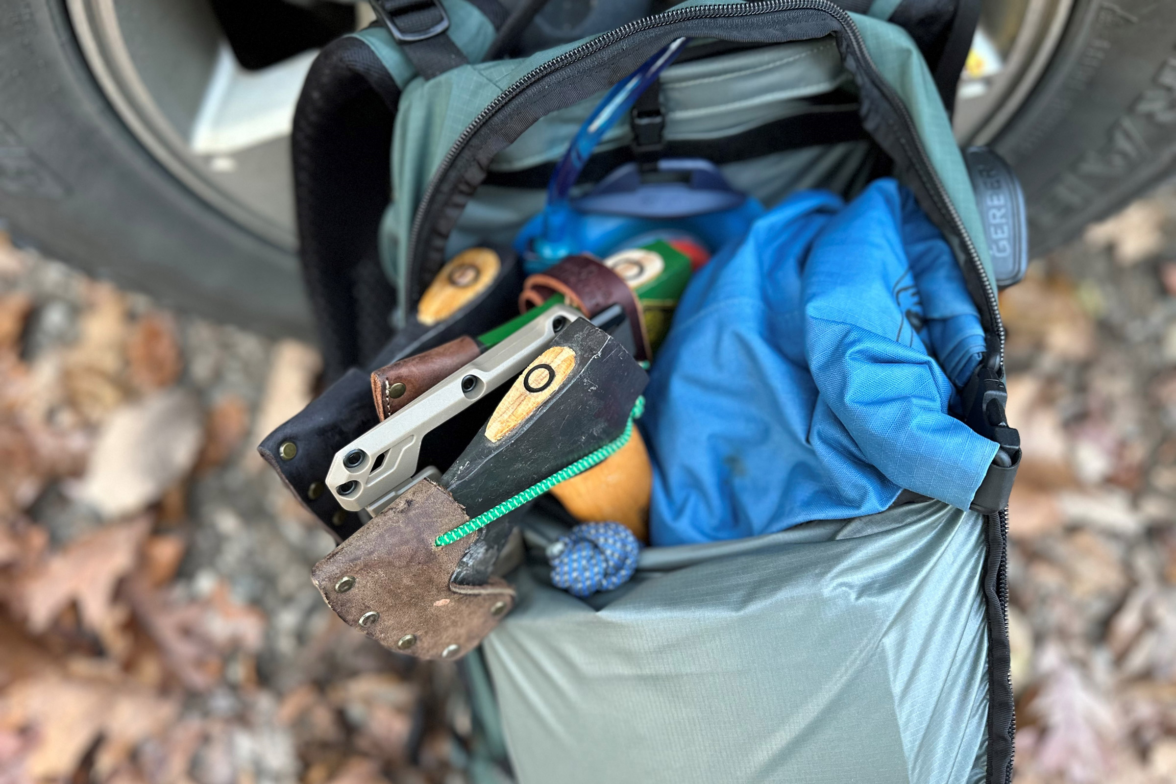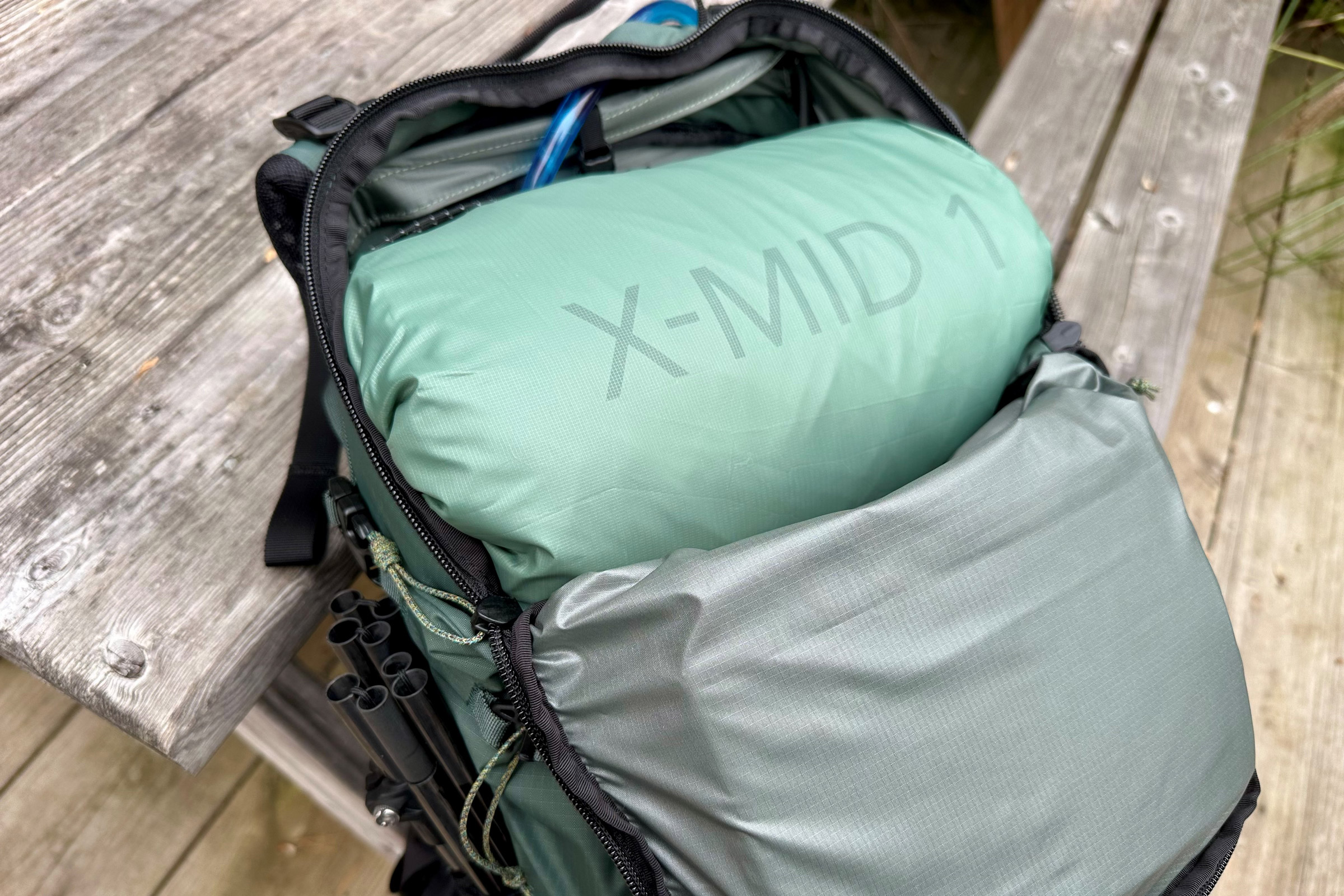 For this overnighter, the expandable side pockets and front mesh panel came in handy for storing soft goods and freeing up some space inside. In hindsight, I could have carried the tent and its poles in one of the side pockets. Unlike a standard side pocket, when the ones on the JMT 25L are expanded, they have a wing that can wrap around the front of the pocket, stabilizing whatever you’re carrying in it.