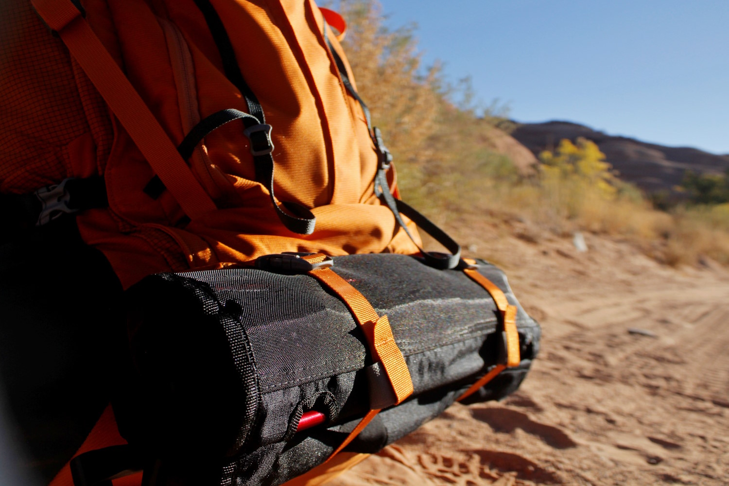 From mile one, my back and rear hips felt swaddled in a layer of some of the most comfortable mesh and padding I’ve ever worn, flexibly sewn to the lower middle of the pack. This was reinforced with rigid external padding sewn to the bottom exterior corners of the pack. This dual anchor point system felt fitted, free-floating, and rigidly supportive all at once.