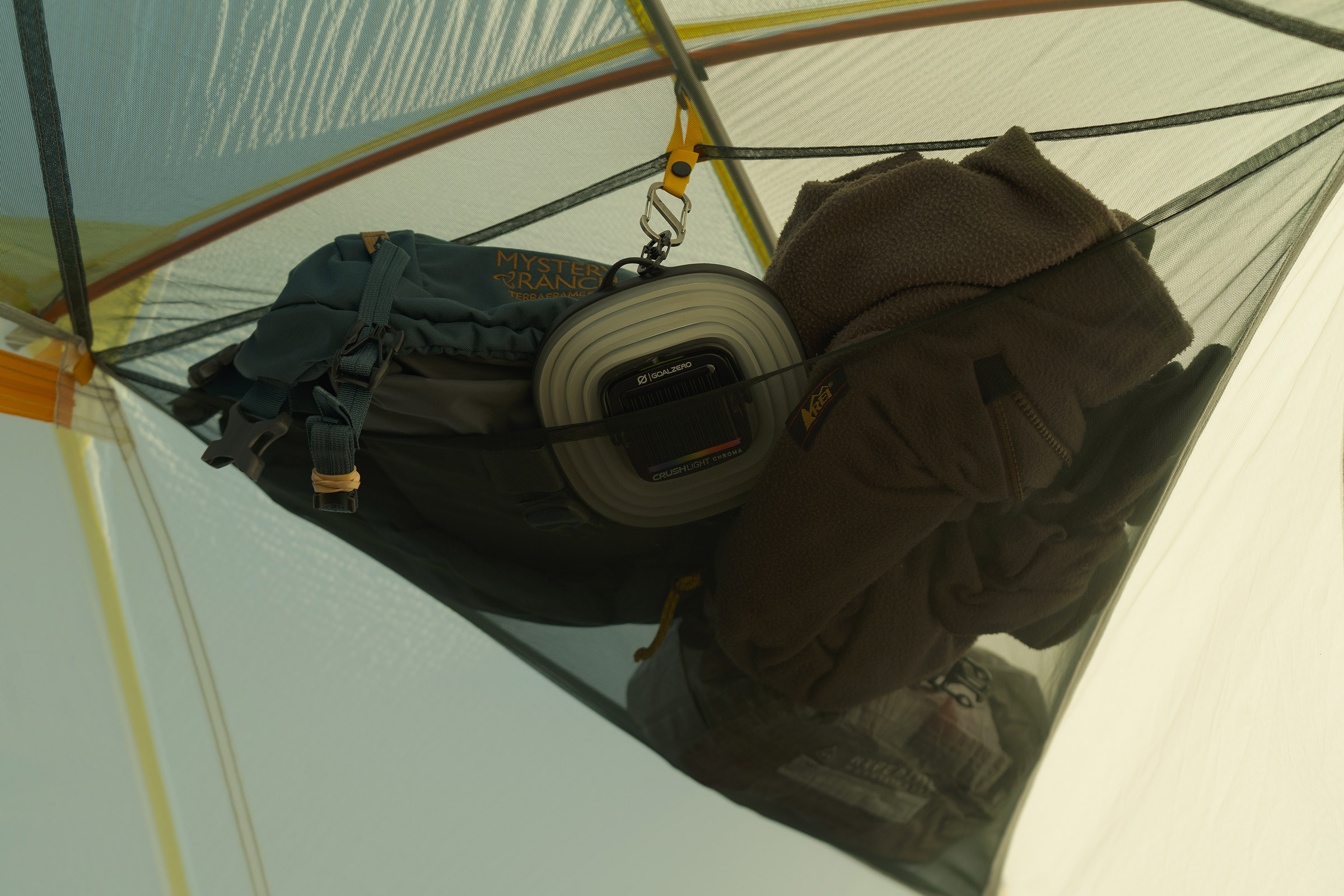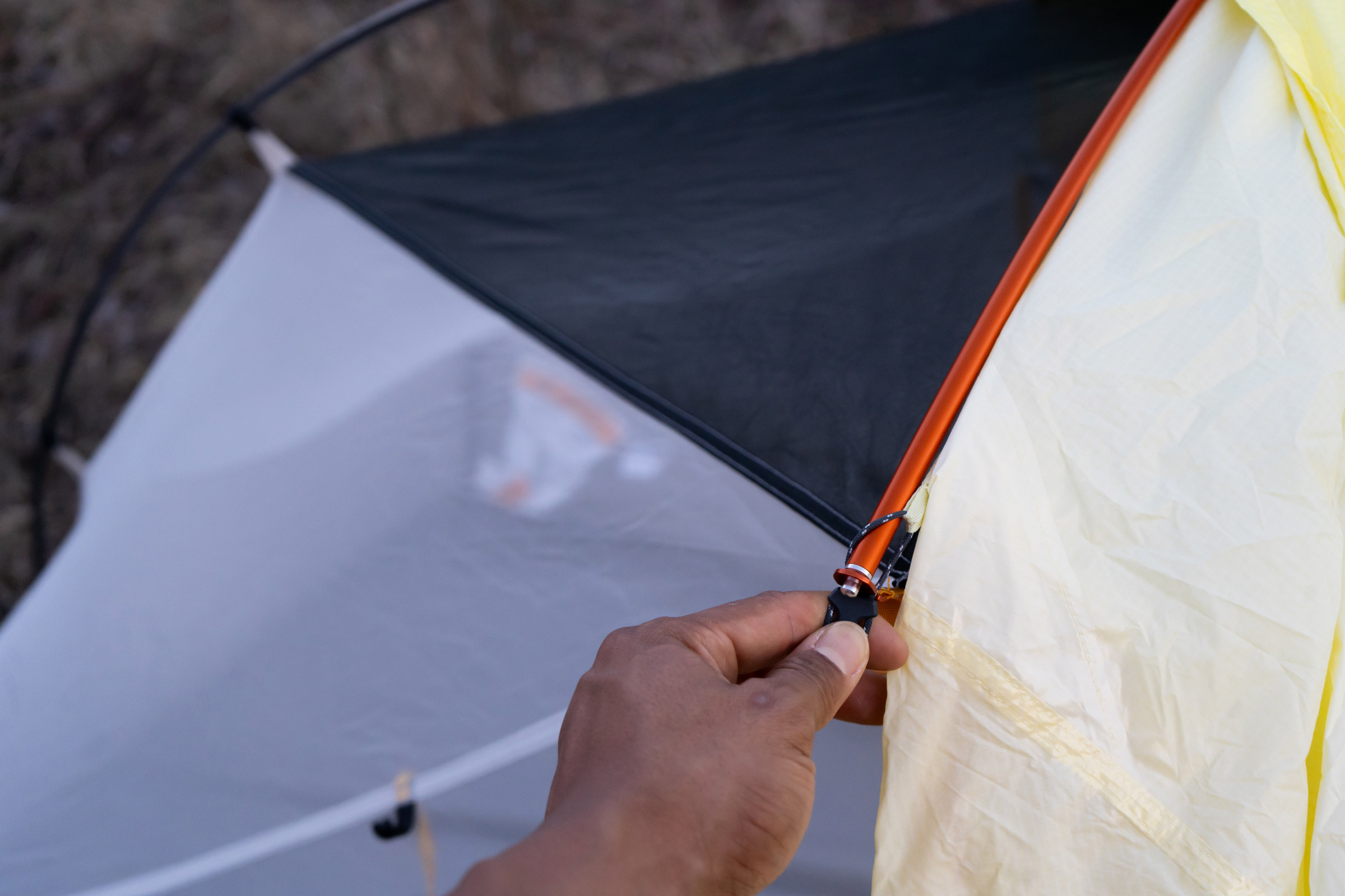 Sans sleeping bags, the tent pinches a bit at the midsection. It was a minor issue. But it was enough to make me miss the Hornet’s solution: a tether between the tent body and rainfly to pull out the mesh.