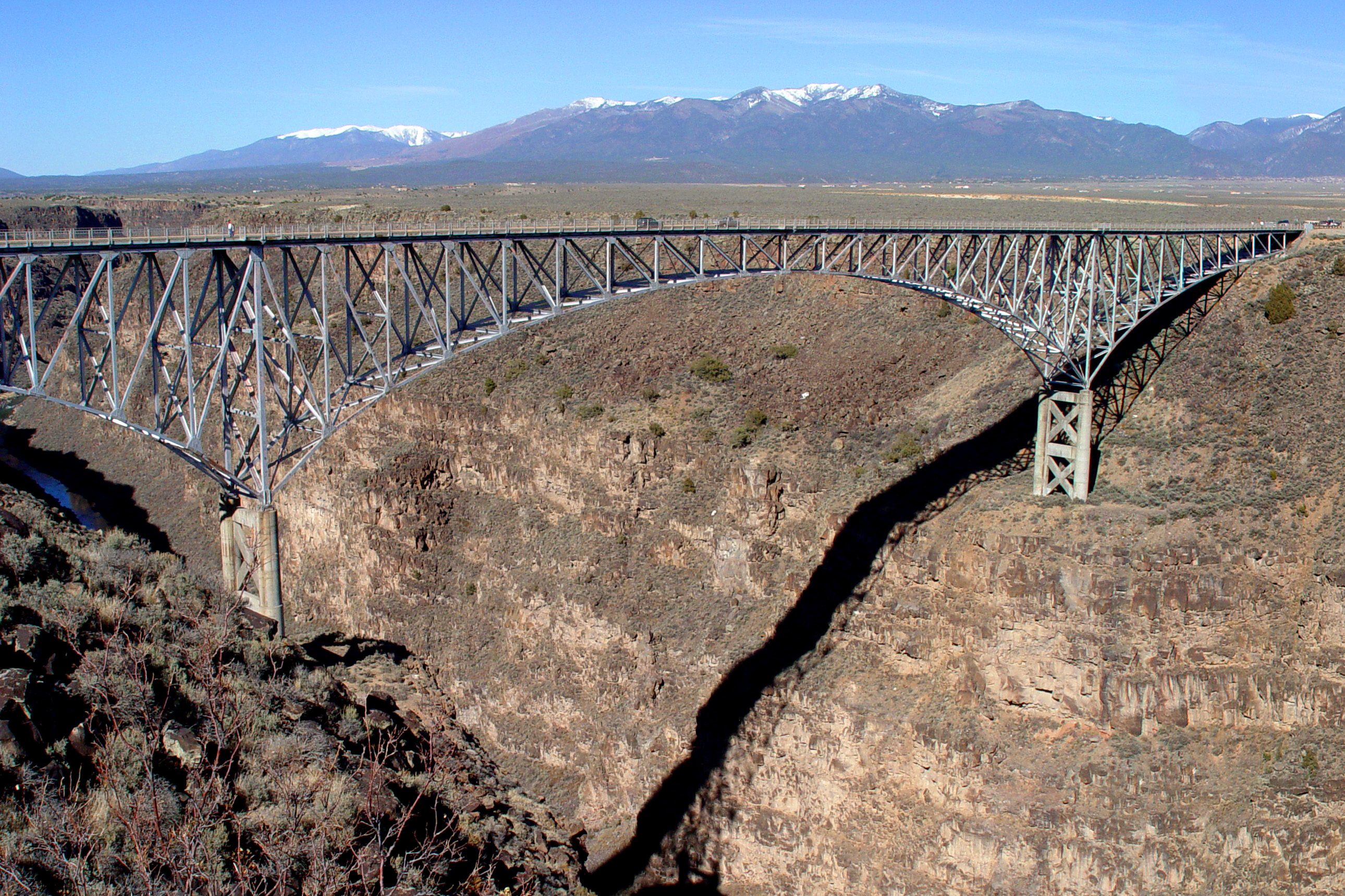 Along the way, the Rio Grande River smashes through ancient volcanic rock canyons near the Taos Pueblo.