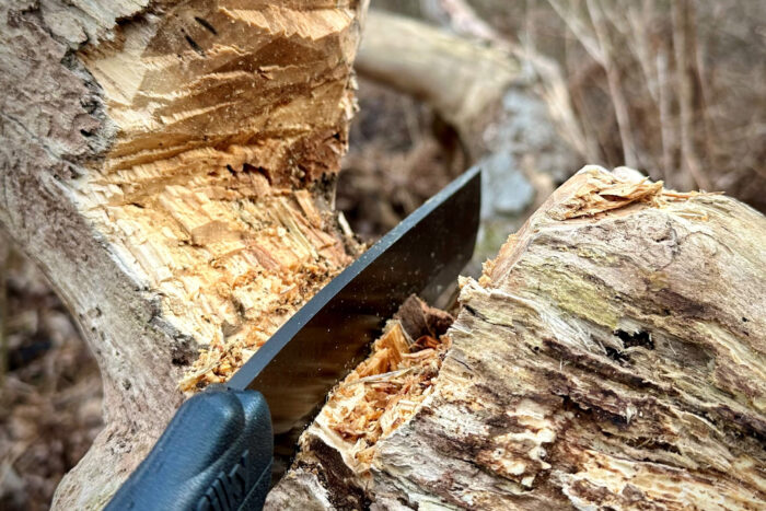 Out in the wild, the NATA Outback overperformed. Right off the bat, I could tell the black oxide coating makes a big difference. Not only is the condition of the blade better when you’re done, but the NATA Outback also passes much more smoothly through wet and dry wood. Nothing sticks to it that I can’t easily wipe off.
