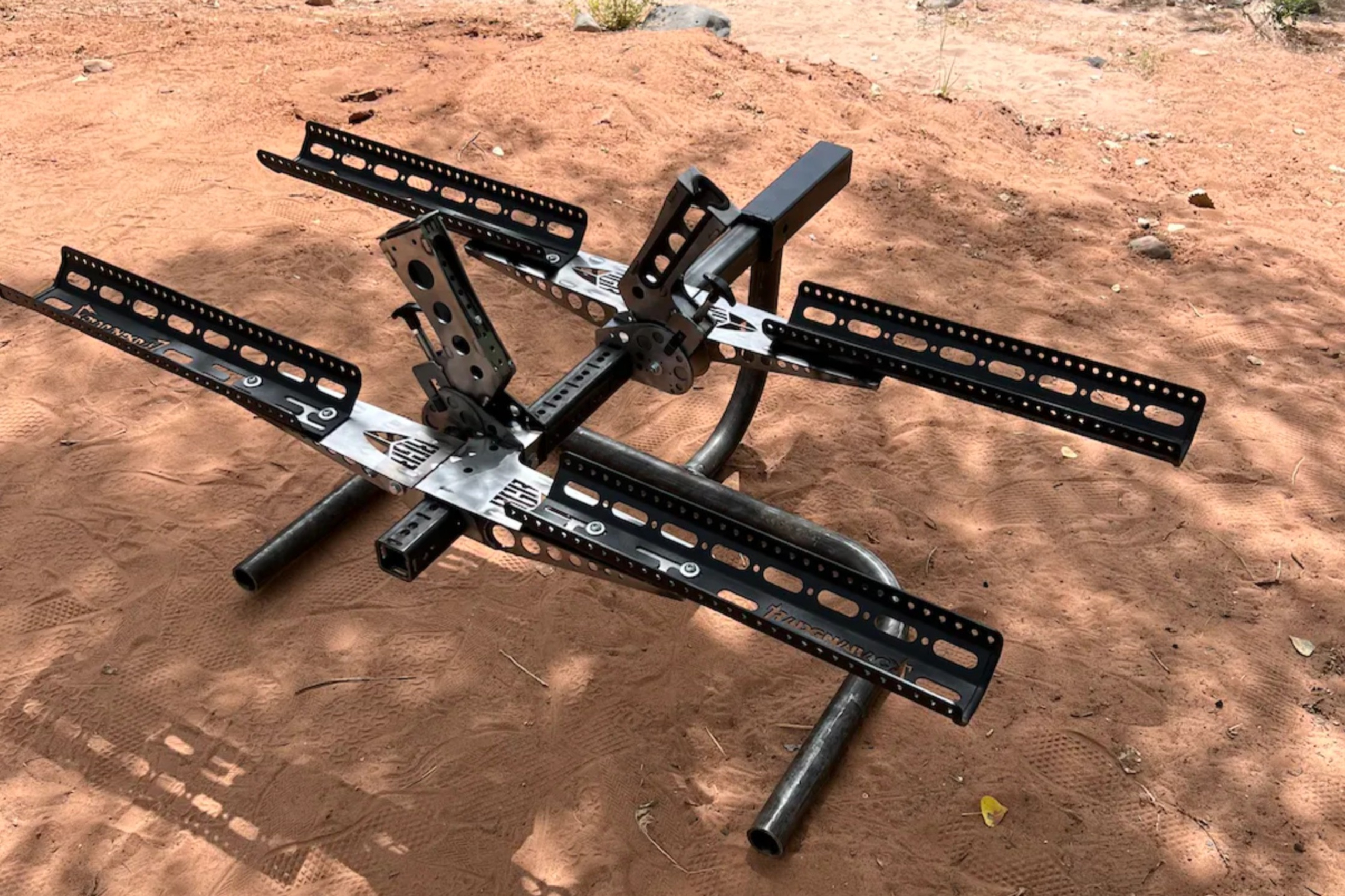Enter RadGnarRack. This hitch-mounted bike rack is made with heavy-duty steel and materials used in construction. One side of the rack lowers, creating a ramp to roll your bike onto it. The bike crank slides into a lock, which holds the bike in place. It’s slick and super easy to load, even with heavy bikes. No more lifting heavy bikes to lock them onto your car, and no more anxiety about your bike being too heavy for its rack.
