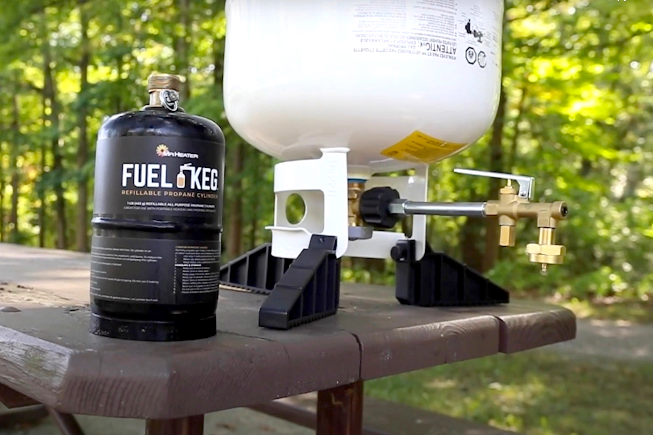 Green propane canisters are far and away the most common fuel canisters at any campground you walk into. But they are extremely wasteful. Somewhere between 40 and 60 million of them are sold to consumers every year, and the vast majority of those end up in landfills. Mr. Heater aims to change that with its Fuel Keg refillable propane canister system.