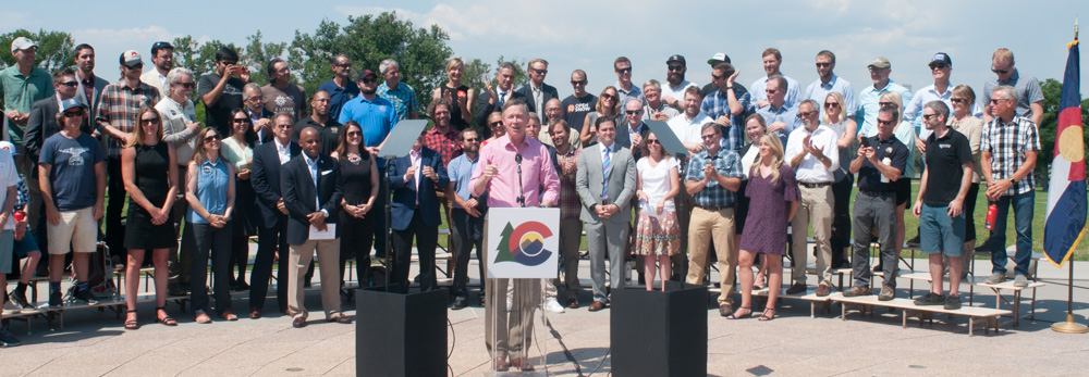 Speakers included Colorado Gov. John Hickenlooper, Denver Mayor Michael Hancock, Outdoor Retailer Show Director Marisa Nicholson, Outdoor Industry Association Executive Director Amy Roberts, and Luis Benitez, director of Colorado’s Outdoor Recreation Industry Office.