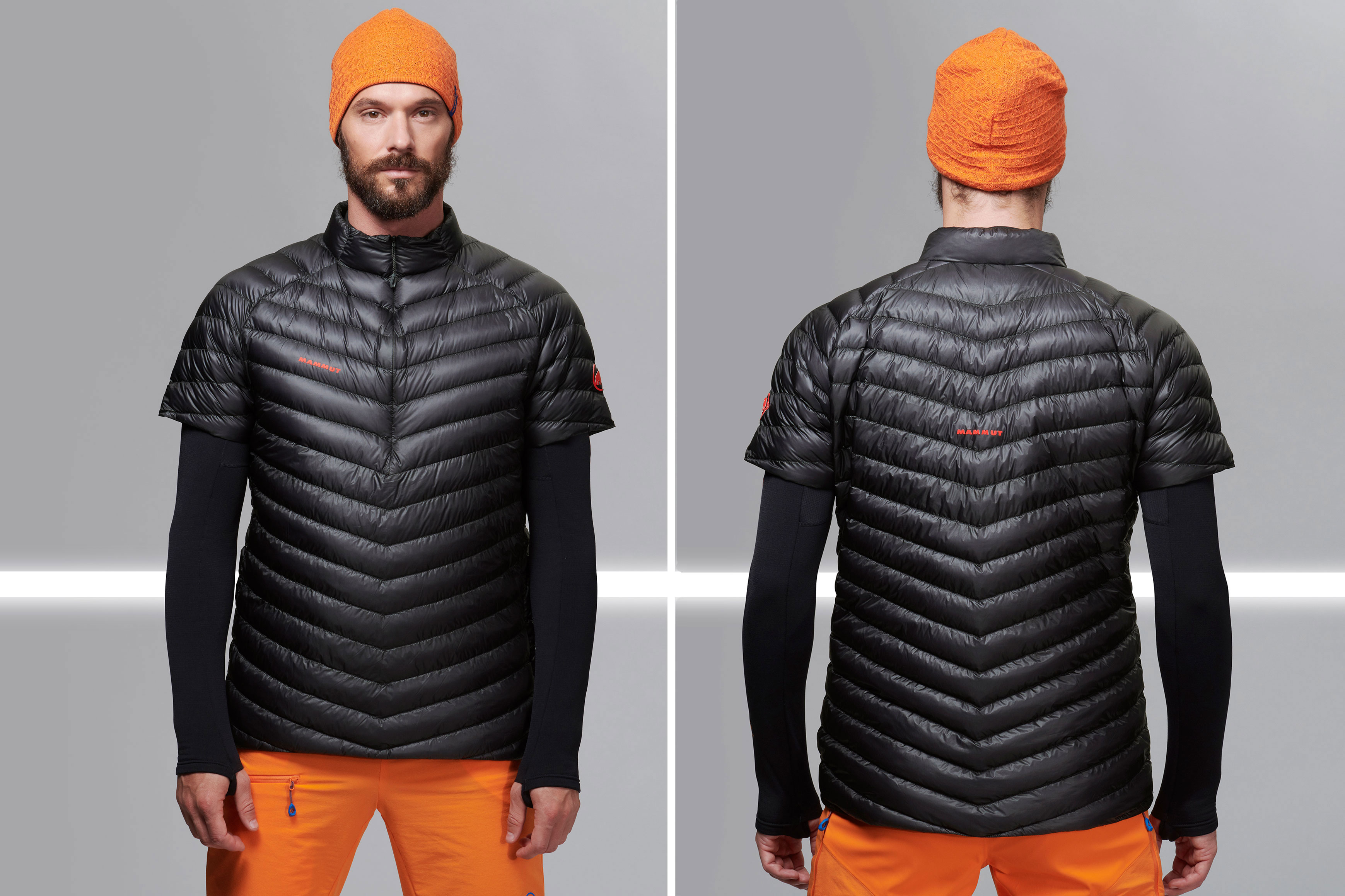 Layer like a pro with a lightweight, packable down T-shirt. You read that right, Mammut introduces the Eigerjoch down puffy T-shirt to add extra warmth to your core. It uses 30 grams of 1,000 fill goose down blown into V-shaped baffles, packed into 5-denier shell — what Mammut calls the “thinnest fabric available.”