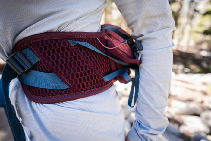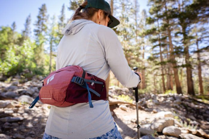 We used one for trail runs in Colorado and short hikes in the Tetons. It carried everything we needed: water, snacks, a light shell, phone, and keys without the bulk of a backpack. The wraparound hip belt and compression straps kept it snug and bounce-free, whether we were climbing steep singletrack or jogging back down. The Biostretch waistbelt is padded and comfortable. This pack has more pockets than most of the models in our lineup, making it great for staying organized.