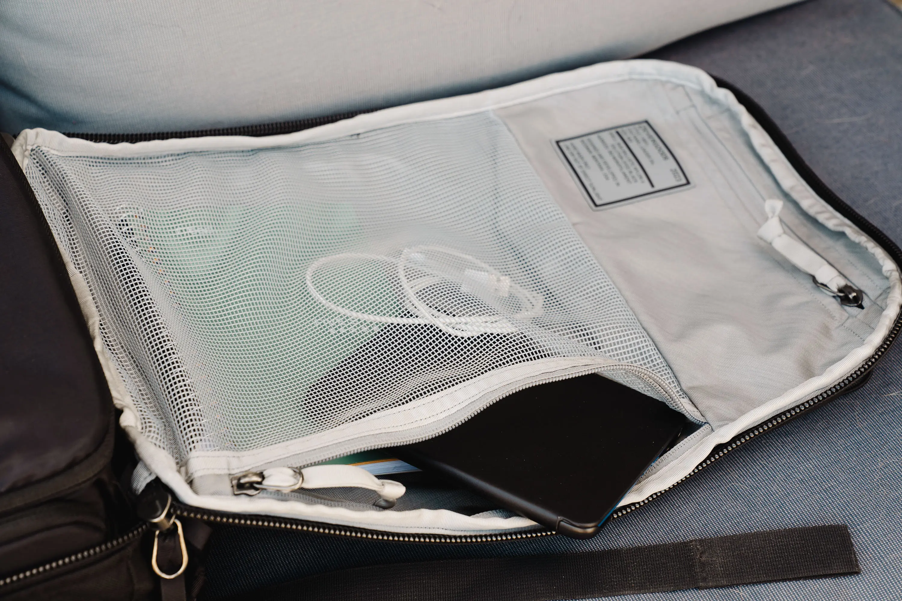 - Compresses down to maximum airline carry-on size, and then expands once you’ve hit your destination
