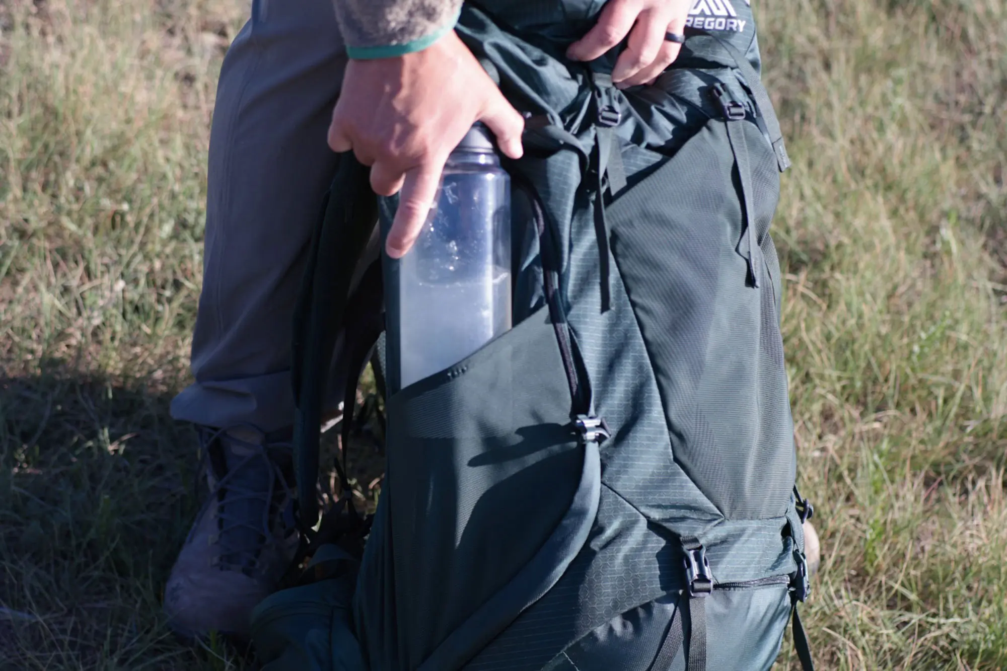 - Outside storage: Two hip belt pockets, two side bottle pockets, one rear stash pocket, and one floating lid pocket