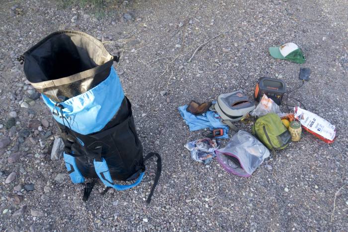 Drawbacks of the roll-top, however, can be catastrophic if the system is not correctly closed. Take it from us: Should the dry pack not be securely closed, your contents will get wet. Luckily, he was in the desert sun and could dry out his clothes. To aid, the SealLine Pro Dry Pack has instructions on the interior seam to help ensure your pack is appropriately closed.