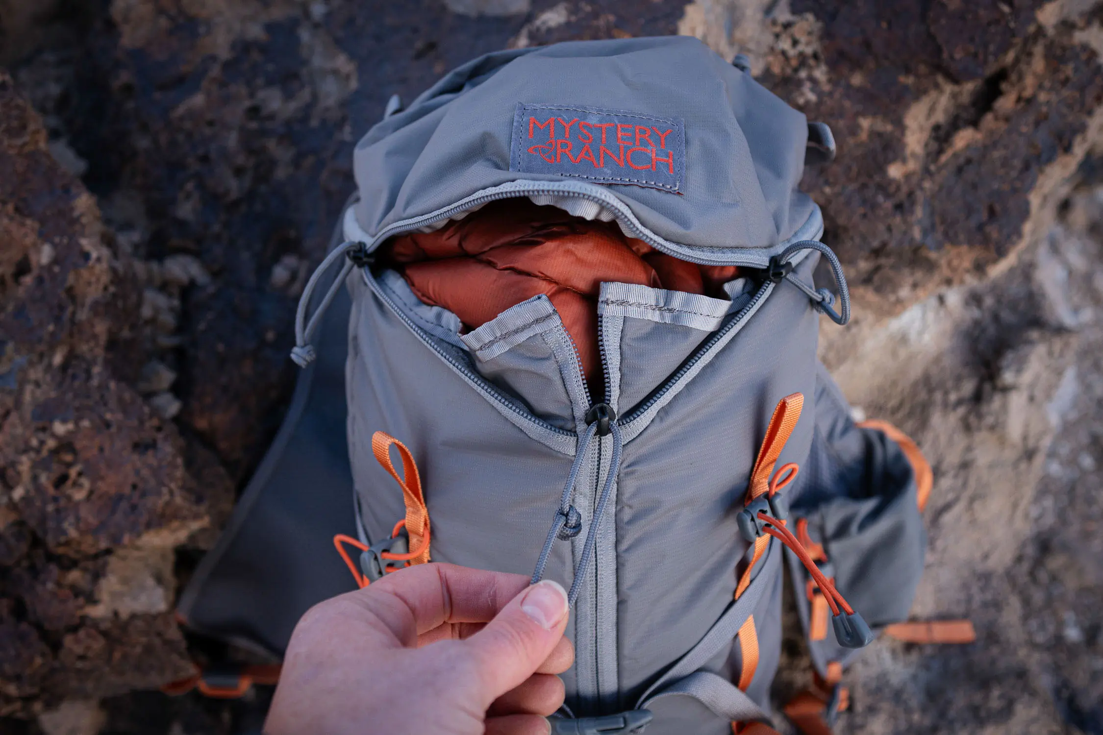 The Mystery Ranch Gallagator Pack has a unique three-zipper closure system; (photo/Miya Tsudome)
