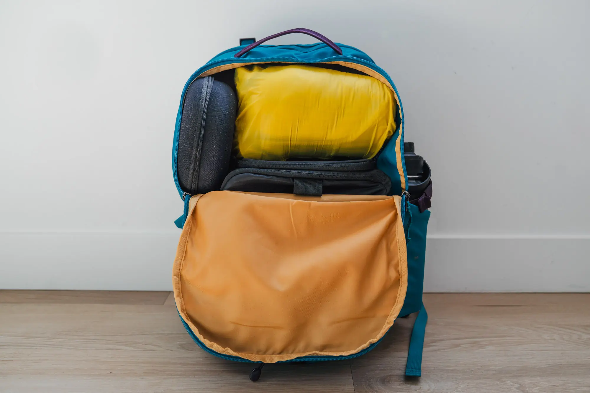 For the daypack itself, look for durable — maybe even water-resistant — fabric, a breathable back panel, straps or loops for securing gear, and a good mix of internal and external pockets.
