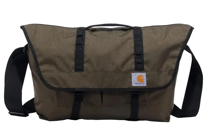 | Carhartt Messenger Bag | $75 | N/A | 500-denier Cordura ripstop nylon with Rain Defender durable water repellant | N/A | 18.25” x 12.5” x 7” |