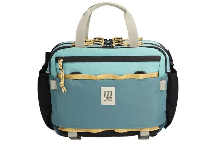Some folks may not want the more specialized look of the traditional messenger bag and opt for this more casual shoulder strap style of carrying. When loaded up, however, these bags can get heavy and aren’t as conducive to bike riding. They can also swing around on your back more and cause pressure points on your shoulders. The Topo Designs Mountain Cross Bag comes with two straps, so you can choose your preferred carry method.