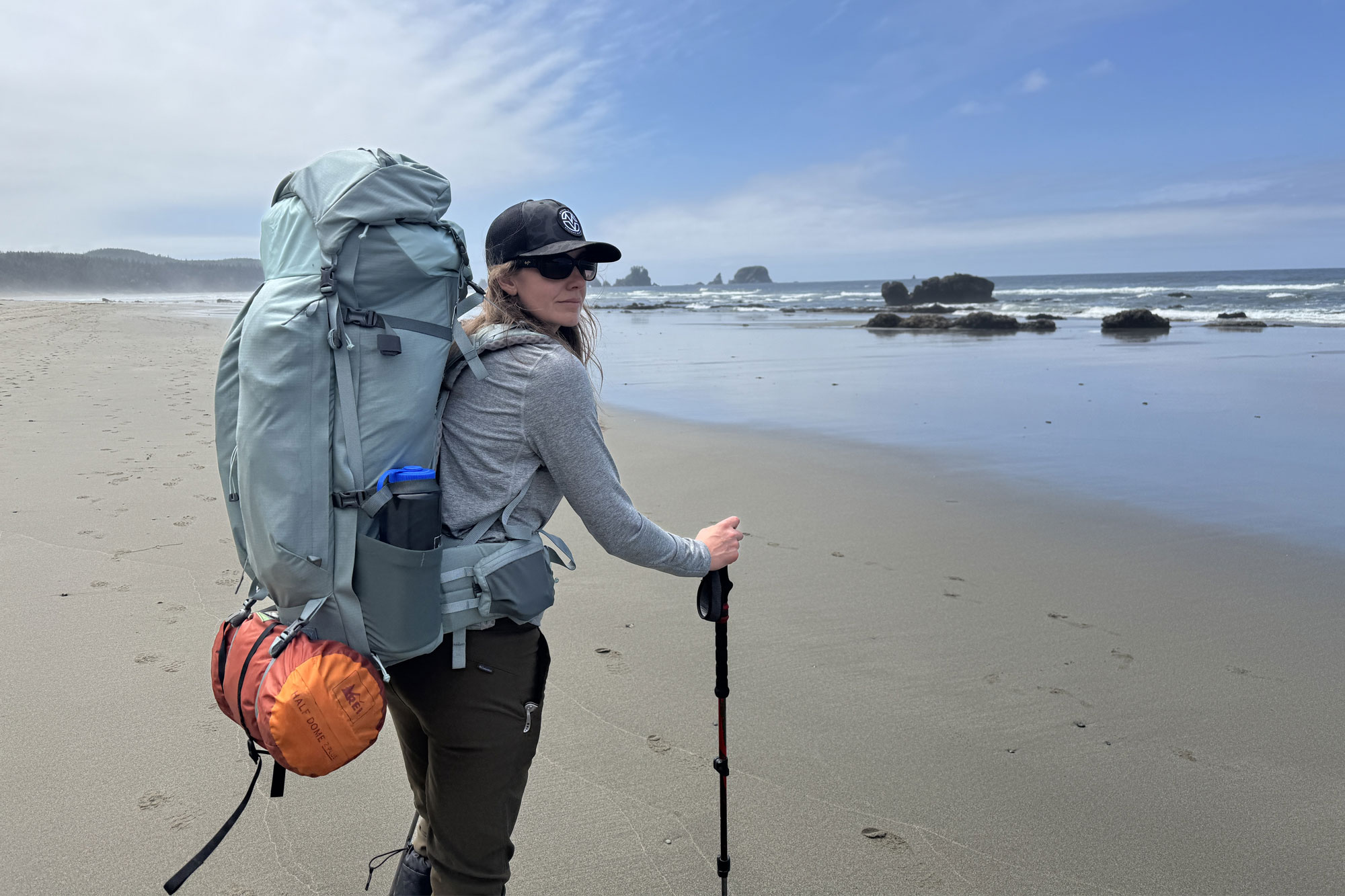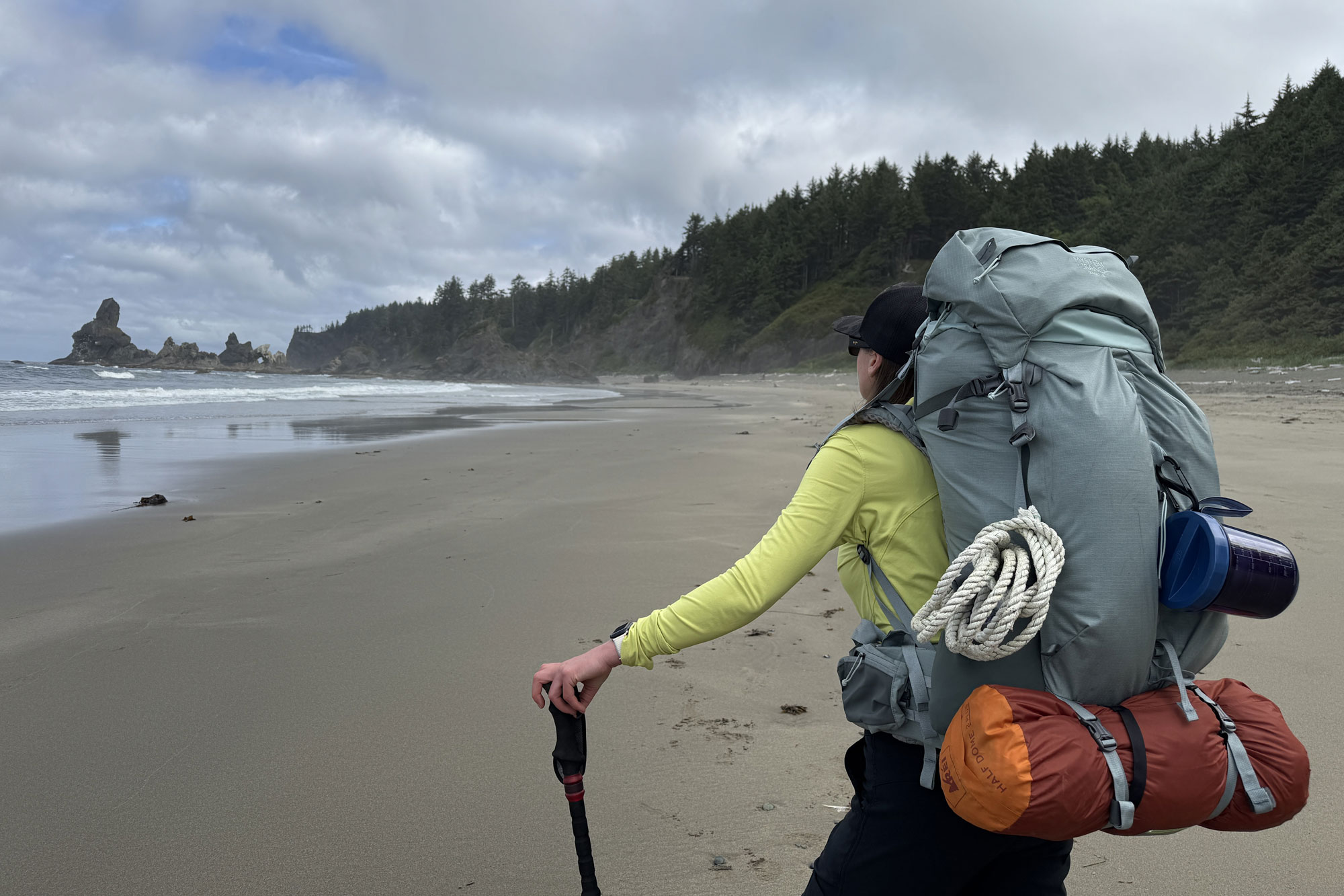 I’m sure a smaller BearVault could fit just perfectly, though. I carried our tent with the 50L, but just couldn’t quite get it into the designated compartment, so I ended up strapping it to the bottom of the pack. I’m a tallish woman and could see myself carrying the larger 70L pack. If you’re smaller than me or take fewer “camp necessities” along, the 50L would totally meet your needs.