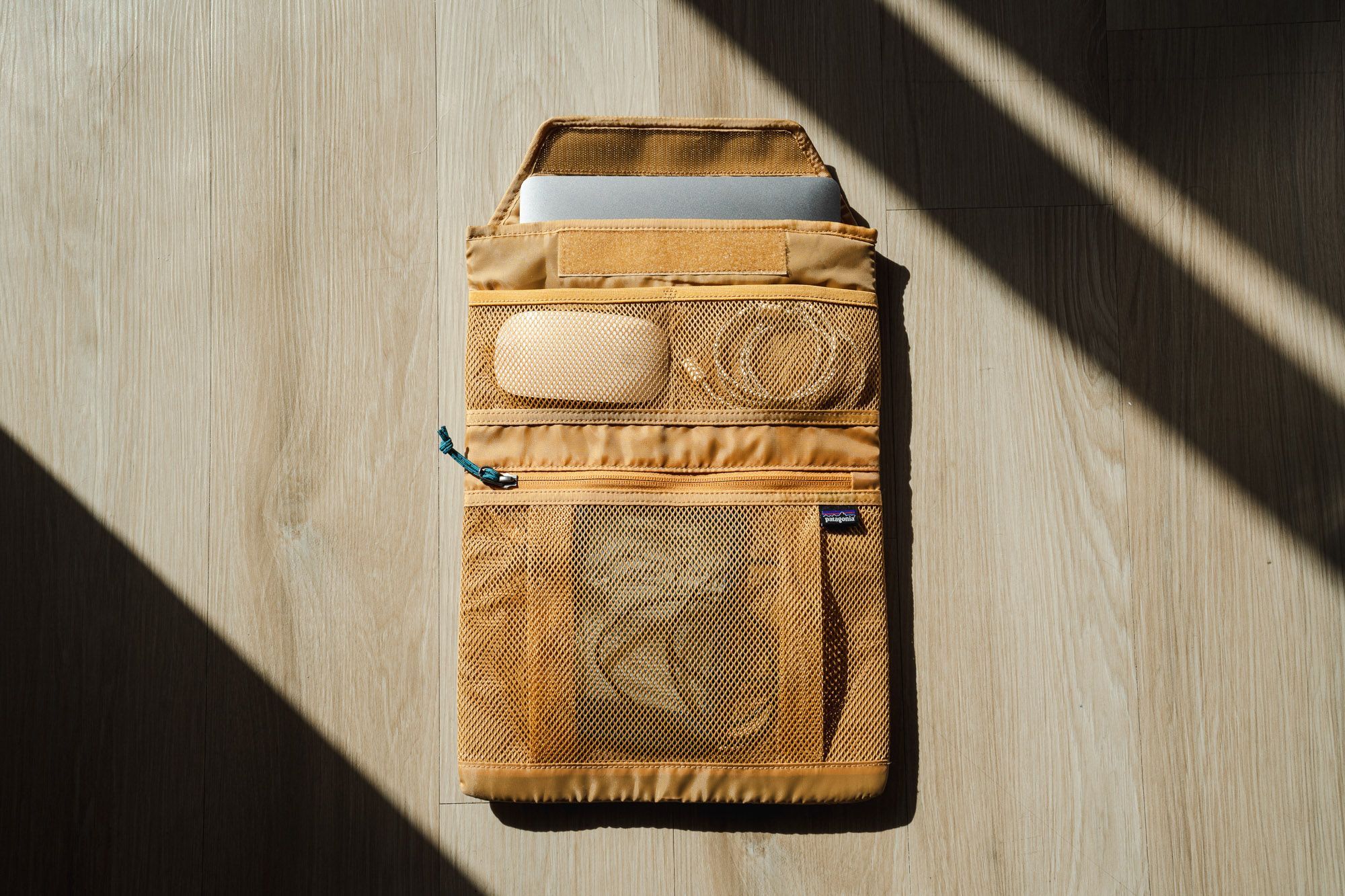 This sleeve easily slides in and out of the pack’s back panel, keeping all your little items well-organized and protected in its multiple mesh pockets. Gone are the days of digging around your pack trying to find that pesky USB-C cable when it can easily sit in a see-through pocket next to your other gizmos and gadgets.