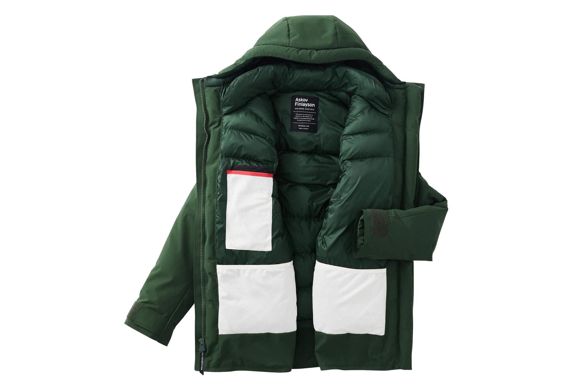- Key features: 100% recycled nylon liner, 100% recycled polyester shell, 100% recycle featherless insulation, Bluesign certified micro ripstop taffeta pocket lining, insulated interior collar, two-way water-resistant YKK front zipper, five exterior pockets and two internal pockets (including a removable pocket insert that blocks cell and WiFi signals), lifetime warranty, 90-day no-questions-asked return policy