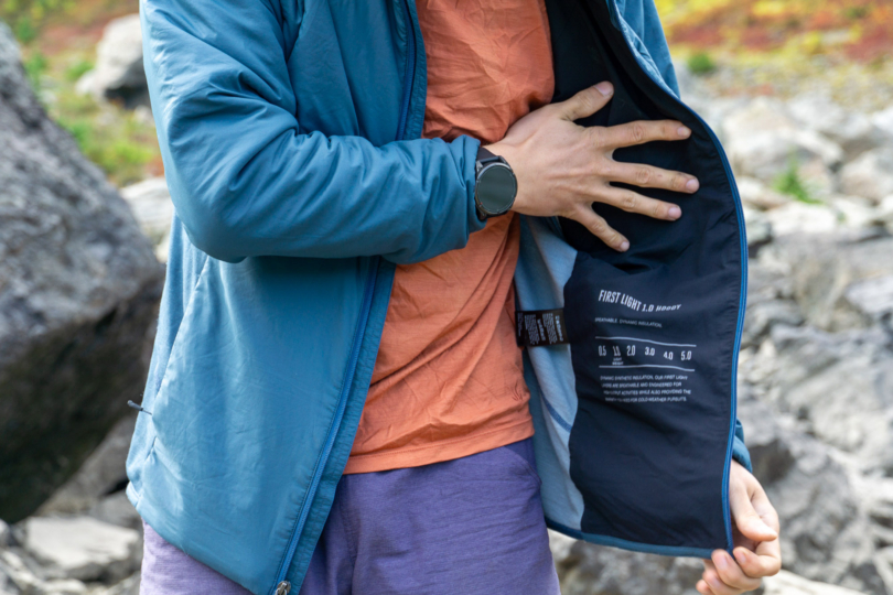 - Material: 20D nylon stretch ripstop shell with merino wool jersey and woven stretch interior; PFAS-free DWR finish