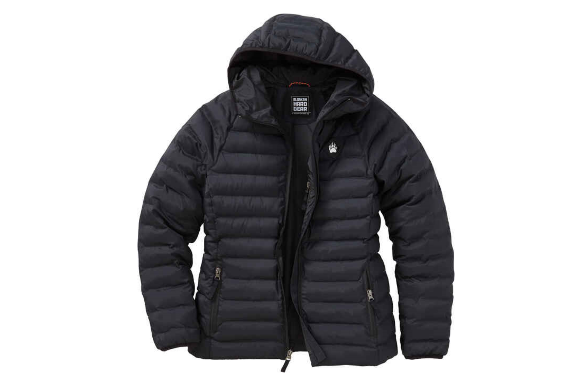 - Key features: Two zippered hand pockets, one internal zippered chest pocket, waist cinch, fixed and insulated hood