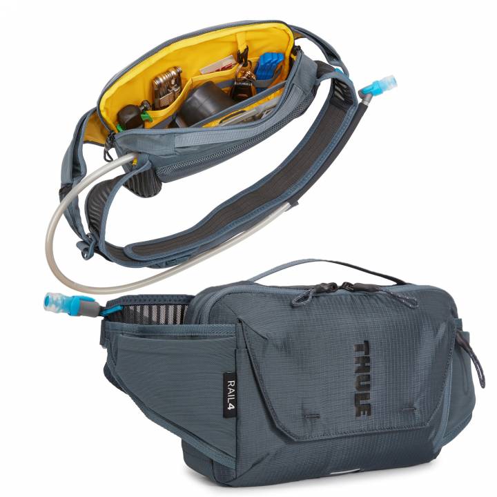 Thule’s new hip pack lineup includes the Thule Rail Hip Pack ($100), with a neat ReTrakt system that allows you to drink from a hydration hose while riding hands-free. The Rail 4L hip pack is made of nylon and has quick-access side pockets, a back phone pocket, a front flap pocket, magnetic hose retention, and a hydration reservoir (included). It’s also got an attachment loop for a safety light.