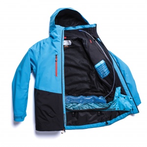 The Hydrastash Jacket eliminates the need to carry a separate hydration pack during resort ski days. A 25-oz. water bladder lies discreetly in the powder skirt near the hips and does not impede movement. A sip-hose comes out of the collar. With this jacket, there’s no need to take off a pack at the chairlift or worry about falling on a water bottle in your pocket.