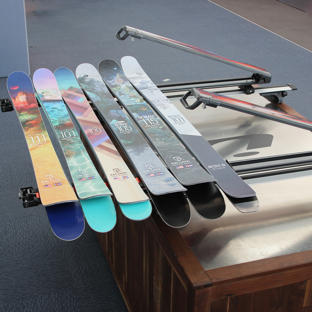Küat’s GRIP hauler upgrades common ski/snowboard rack design with a one-hand lever to open and a sliding rail that extends nearly 90 percent of its width outward from the car. The design makes it easier to load skis on tall vehicles. No adjustment is necessary as an articulated hinge accommodates boards of varying size and bulk.