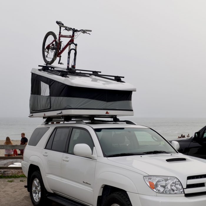 Tepui’s latest rooftop-tent, the White Lightning, has a hard exterior and is ready to be mounted with your favorite rack system, so you can carry your bikes, skis, kayaks, or box right on top of your tent.