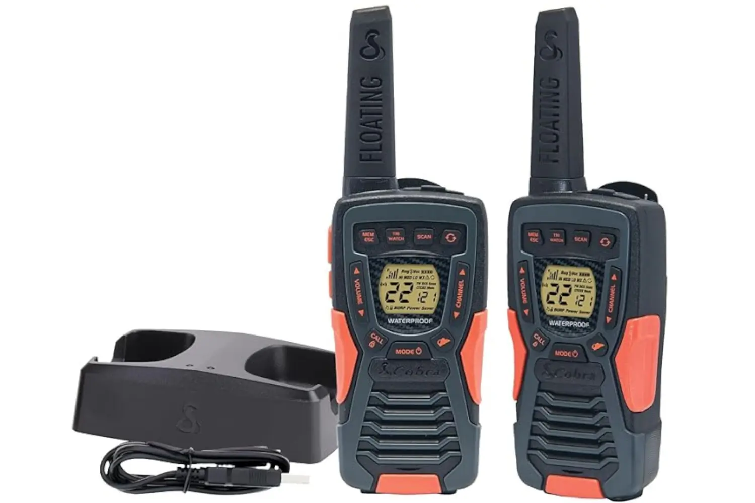 | Cobra ACXT1035R FLT | $120 | FRS | Rechargeable 3,000 mAh NiMH AA cells | IP67 waterproof | 5.6 oz. |