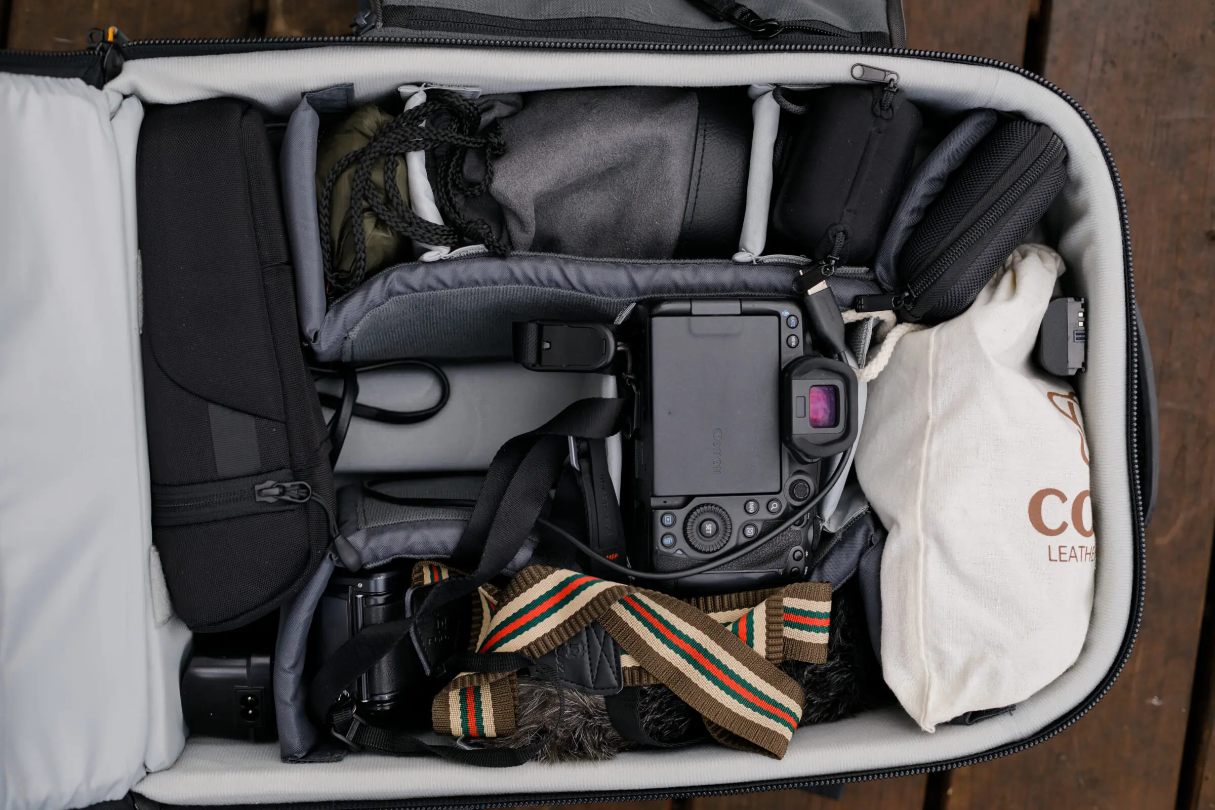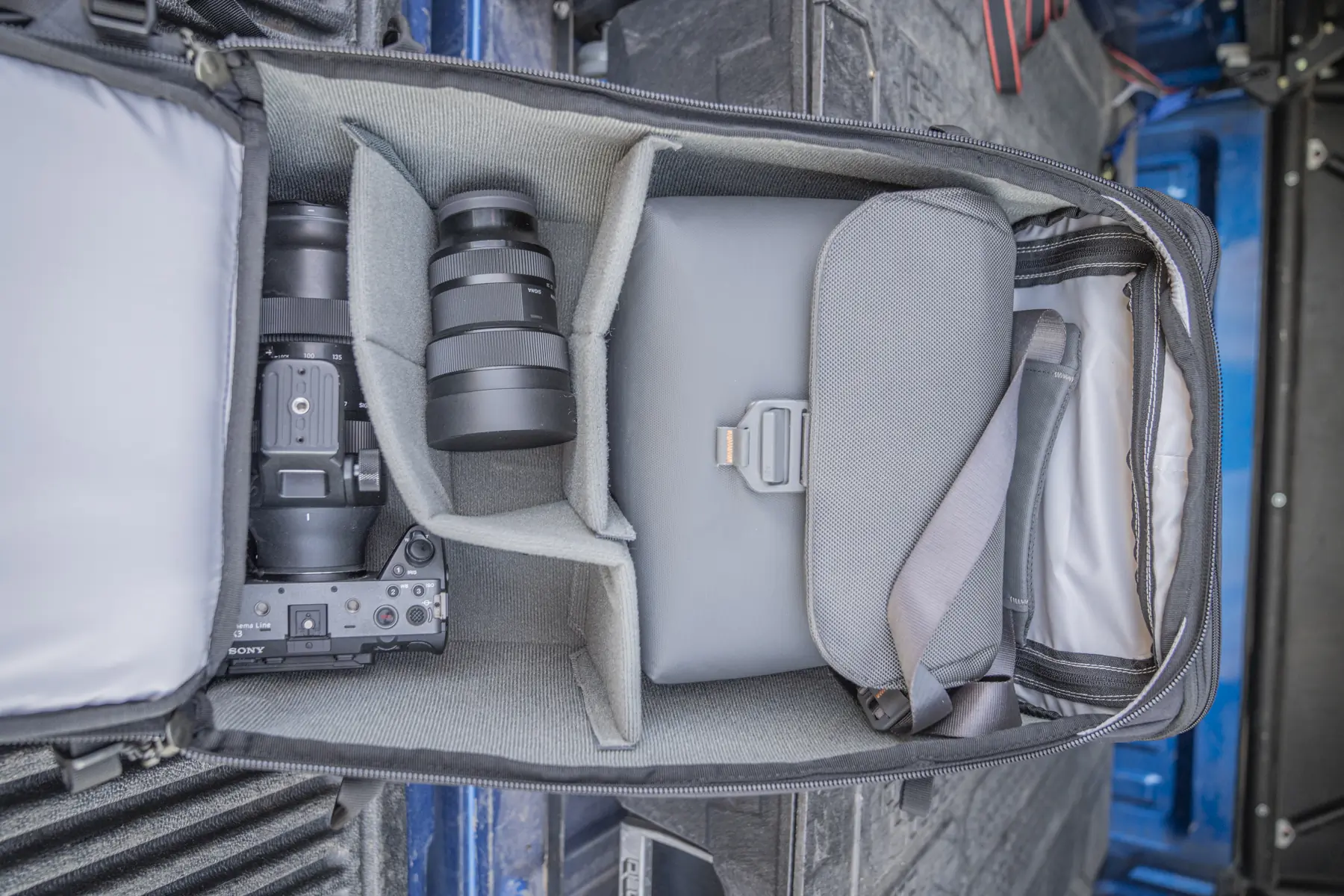 We recently were able to shove multiple camera bodies, a slew of bulky lenses, camera cages, gimbals, mics, monitors, and all manner of awkward-shaped tech accessories into this carry-on/personal item combo and travel stress-free to Africa for a months-long video project in brutal conditions.