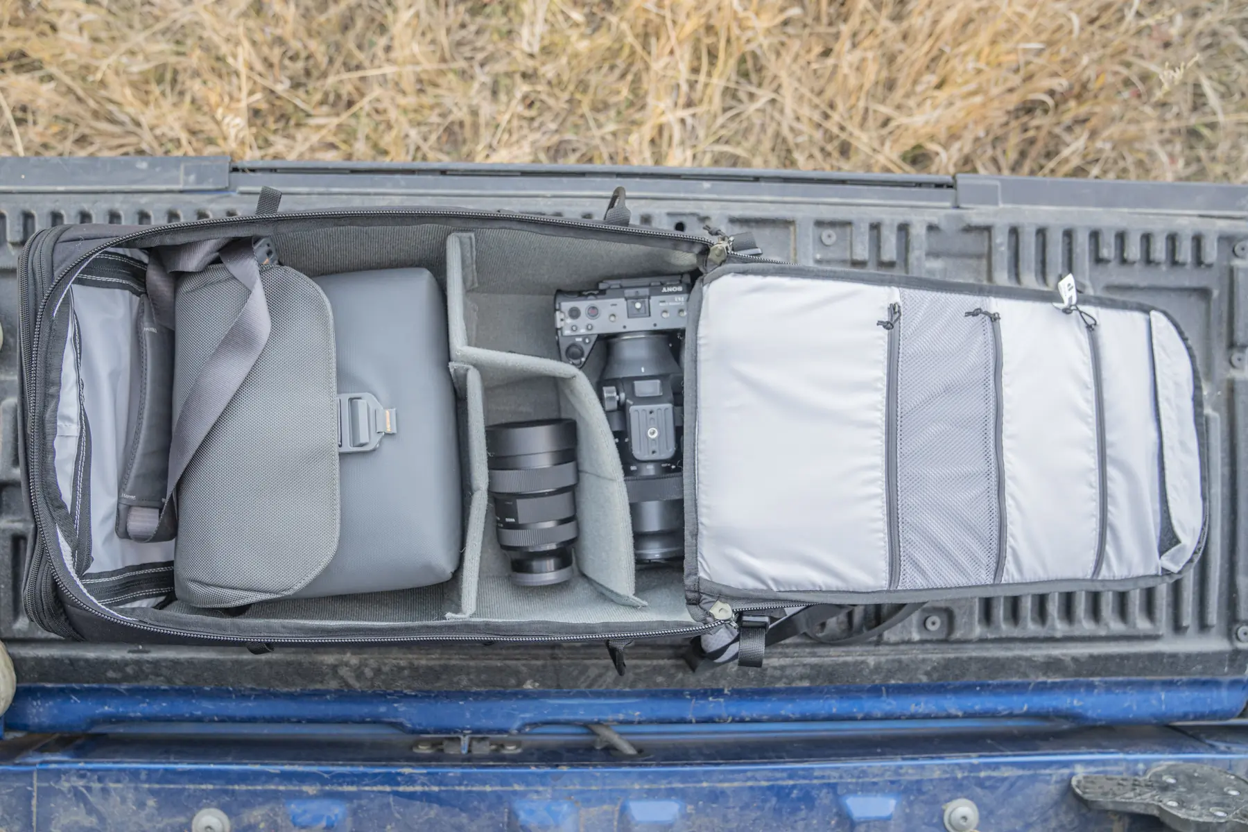 If you go out on longer multiday trips, opt for a larger pack — 50 to 60 L might be a good size. In this capacity range, we especially love the Shimoda Action X50 V2, which carries well and has added features. Find a padded camera cube so you can pack your camera and lenses safely in the pack if you don’t plan on getting one with integrated camera storage.