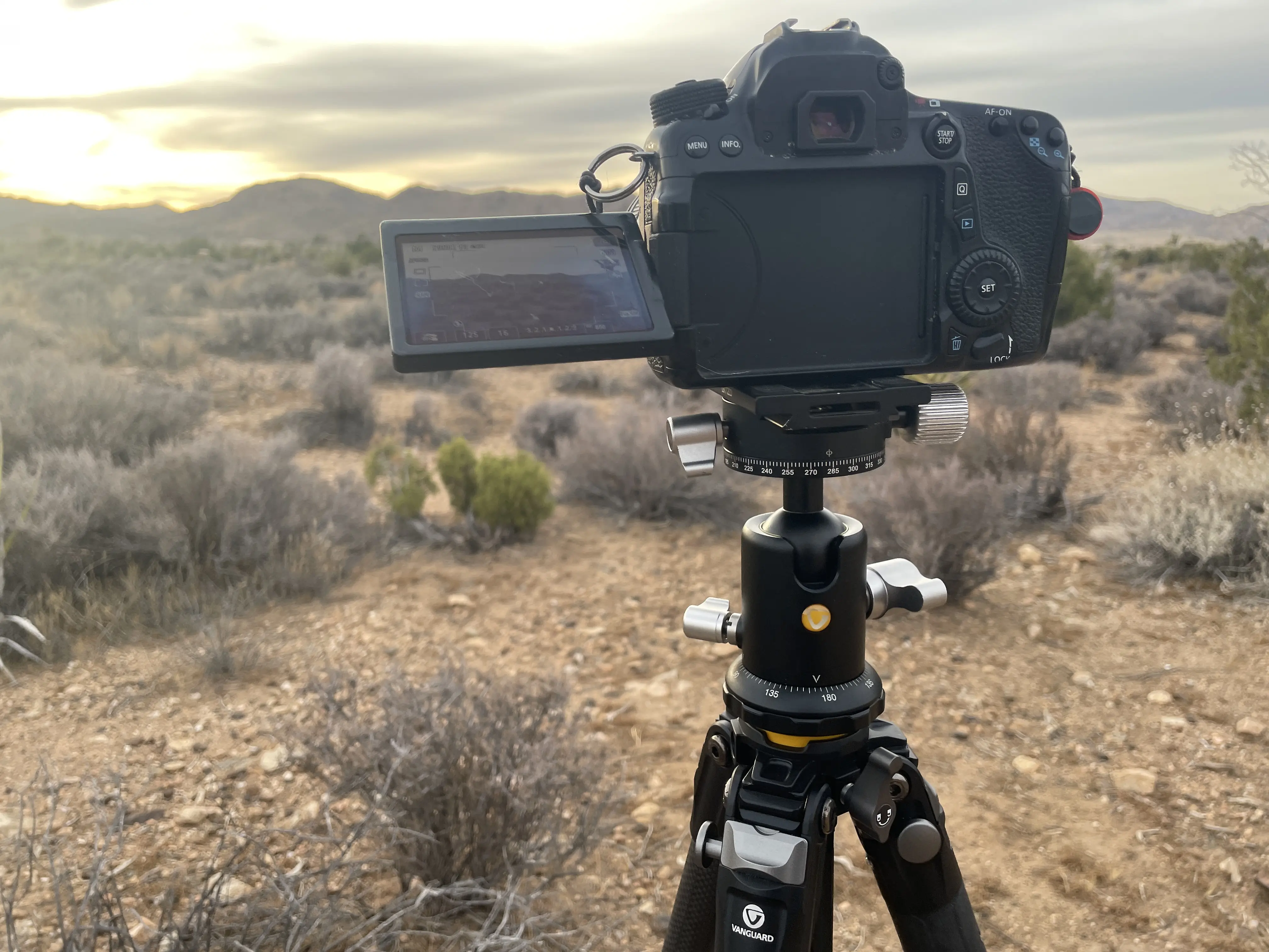 However, if it’s incredibly windy or we’re planning to set up on uneven terrain, we may still carry the heavier tripod because of it can handle those conditions with more stability. But, if we are heading out for a 7-mile hike and we want to bring along a tripod just in case something amazing happens, we prefer something like the Peak Design Carbon Fiber Travel Tripod or Vanguard VEO 5 264CB-160S Carbon Tripod.