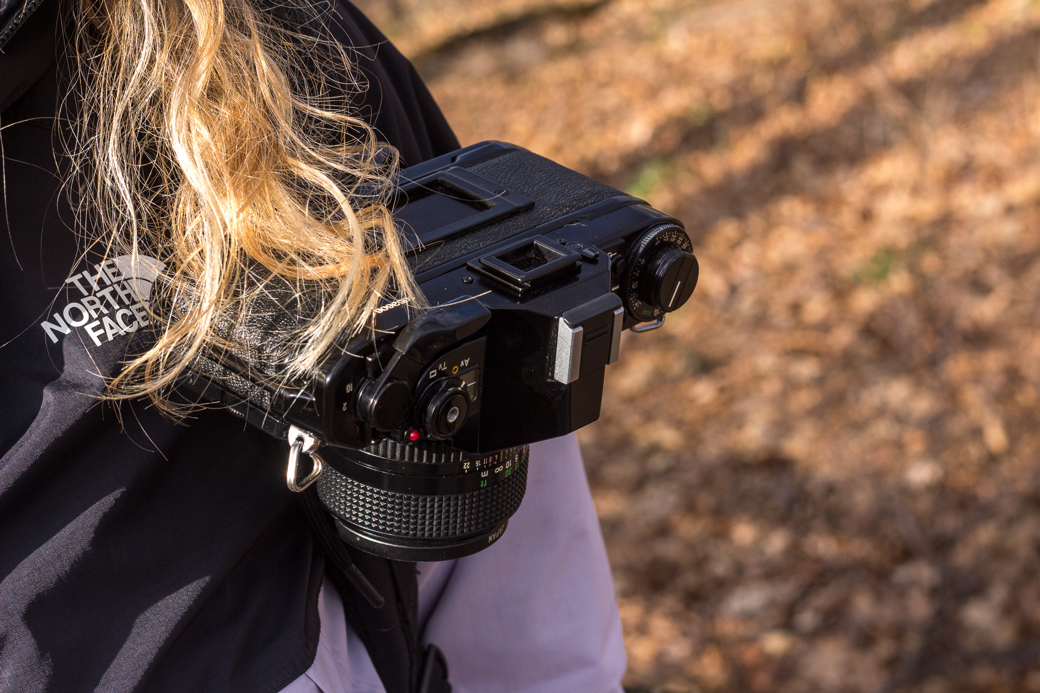 Speaking of lenses, the other less-than-ideal factor is that the clip doesn’t work that well with a telephoto lens. The clip is sturdy enough to hold, but remember the scenario of bulky camera parts jiggling around your neck we were trying to avoid? With a large lens, that’s happening in a new way.
