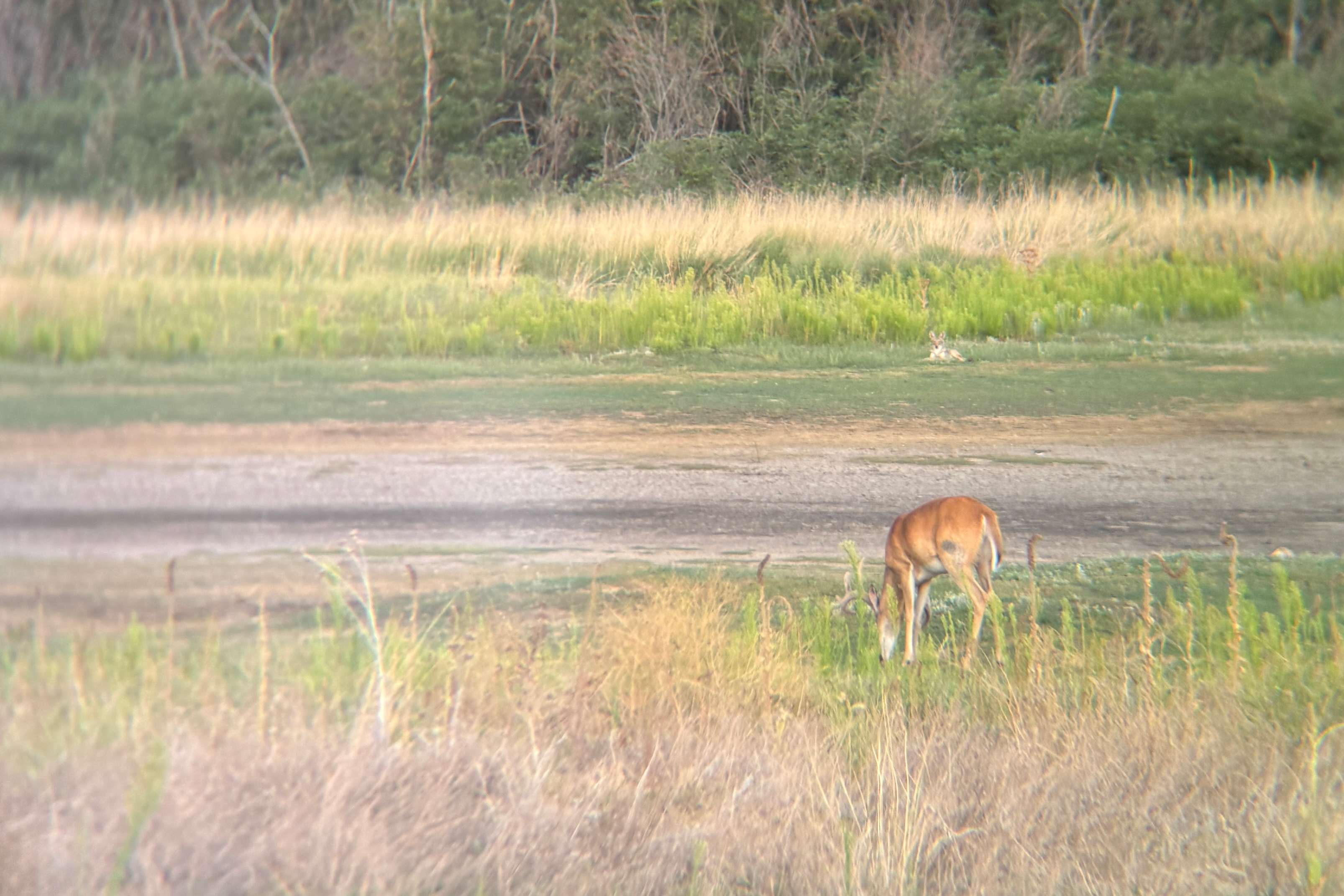 It’s not representative of what you see with the naked eye, but note that the slightest twists on the focus wheel let me adjust my view from the buck to the coyote in the background.