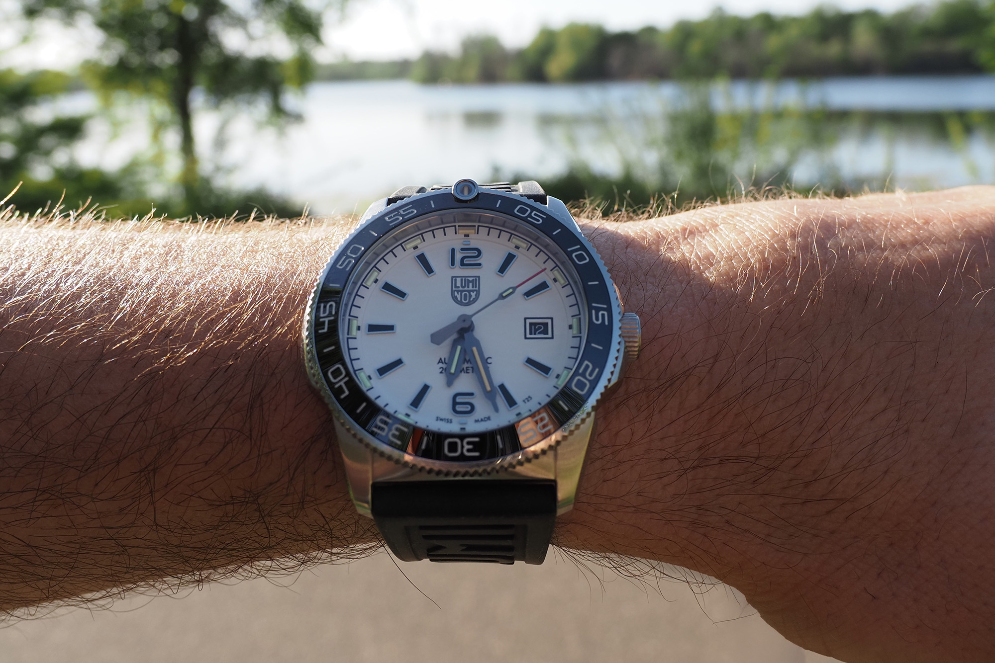 I’ve worn the Luminox Midnight Mariner ($1,595), the first automatic in the brand’s Pacific Diver collection, for a month. It’s been my daily timepiece and wardrobe companion. And it’s accompanied me on fly fishing camp getaways in the Catskills, F1 race weekends in the heart of Miami, and in simple daily life.