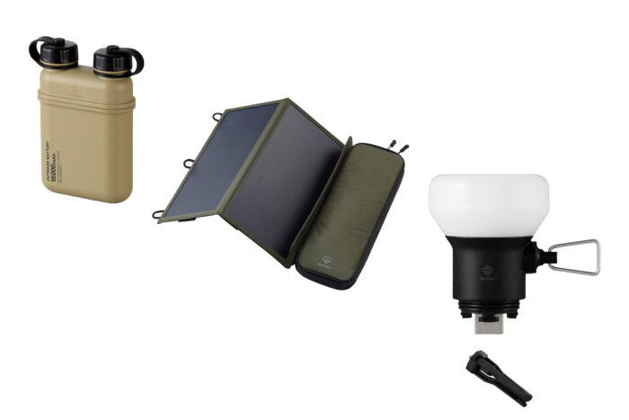 The 15,000mAh Battery looks like a flask and comes in muted, tactical colors that have been all the rage for the last few years with outdoor equipment. The Gear Lamp looks like something that someone from the 1950s would imagine something from the 2000s would look like. Even the 2 Panel Solar charger, finely dressed in ripstop fabric, is visually appealing. And everything has its model name pad printed on it to indicate that it’s part of a collection.