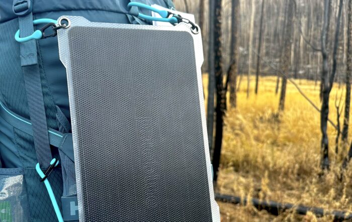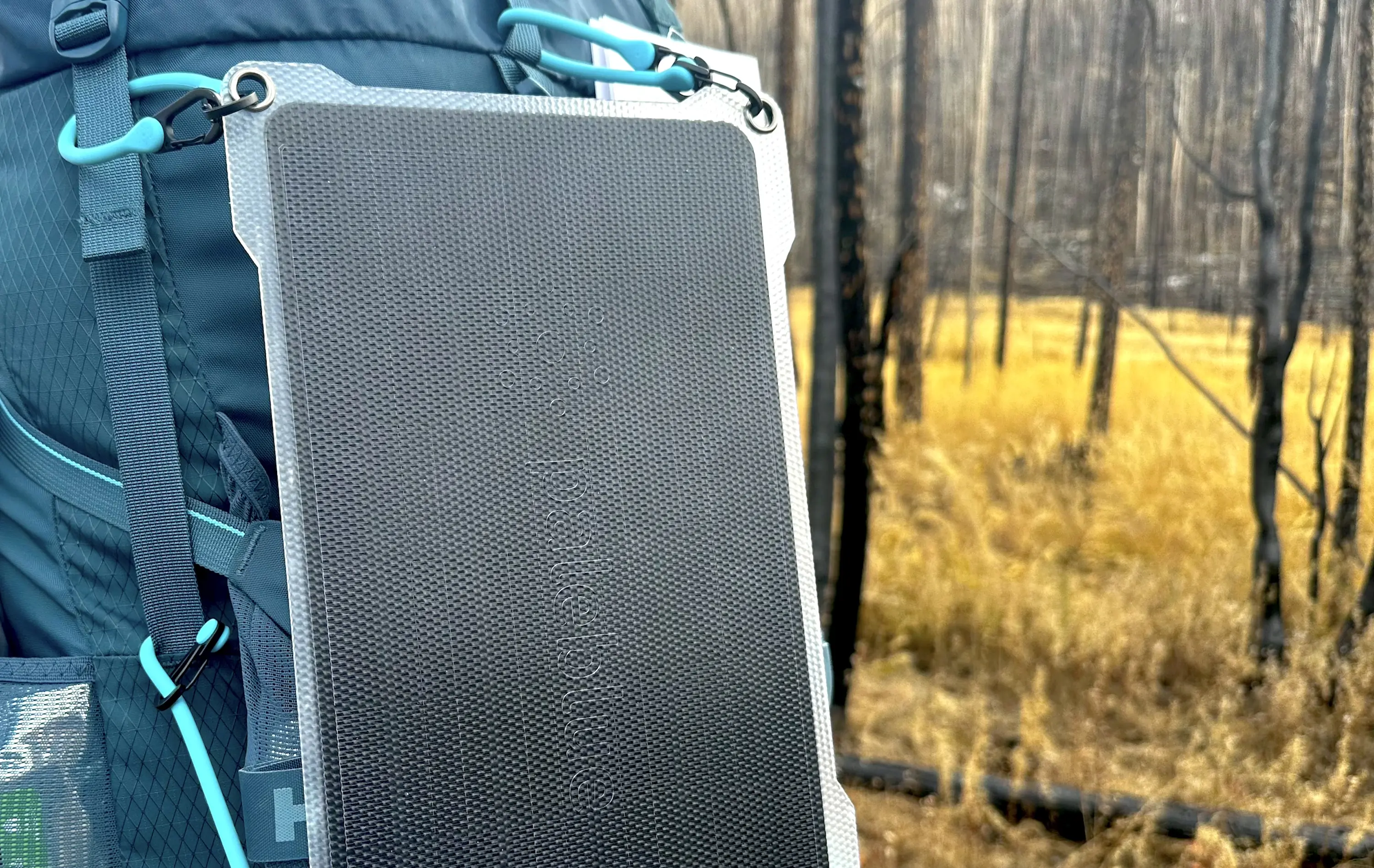 Pale Blue Earth’s pockets protected my phone from sun exposure, as well as general abrasion and weather protection on the trail. It is genius. Some other solar panels have similar features. With minimal fabric and weight, this design offers a designated place to store not just cables, but also your phone or device while charging, keeping it out of the sun and secure. The pocket on the Approach panels can fit an iPhone 14 Pro.