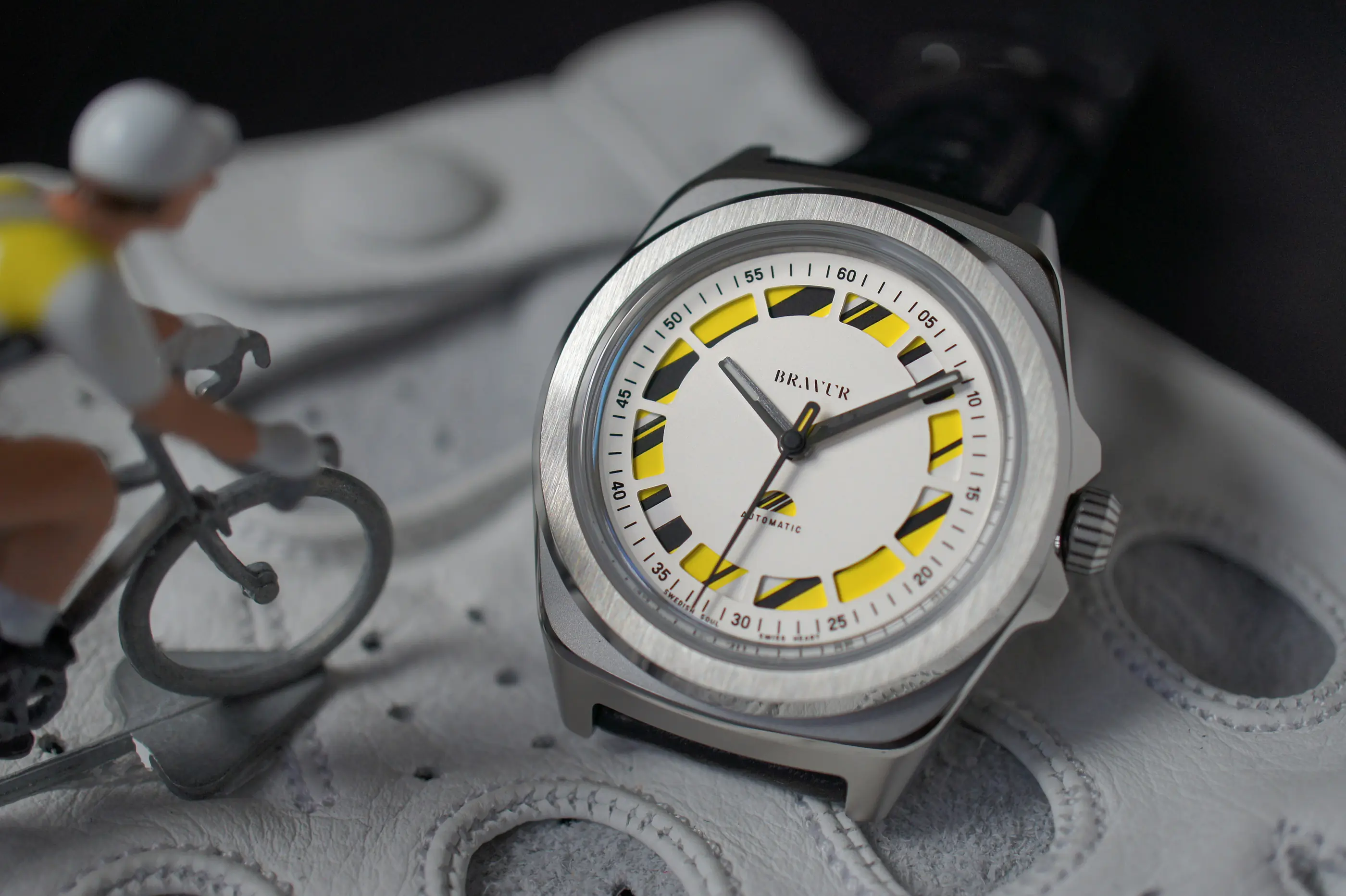 The watches are not Bravur’s most expensive cycling-inspired options — the Grand Tour watches claim that distinction. Instead, Bravur Team Heritage watches mark a more style-focused entry into the brand’s “Cycling Couture” offerings.