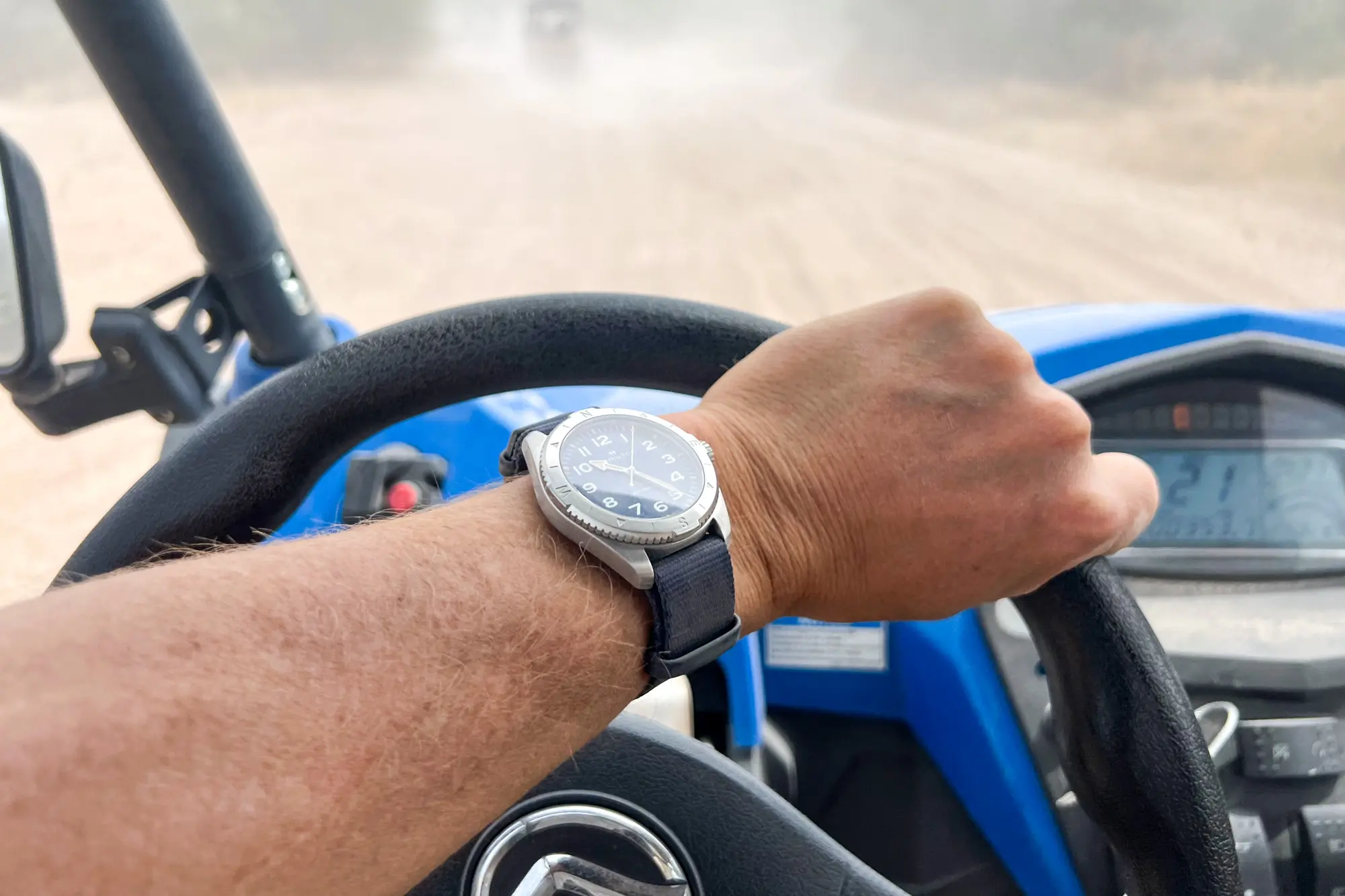 I was not surprised, but when you roll out to the Arizona desert to drive side-by-sides, you don’t usually have a $950 watch strapped on as your test gear. Then again, the Hamilton Field Khaki Expedition is no ordinary watch.