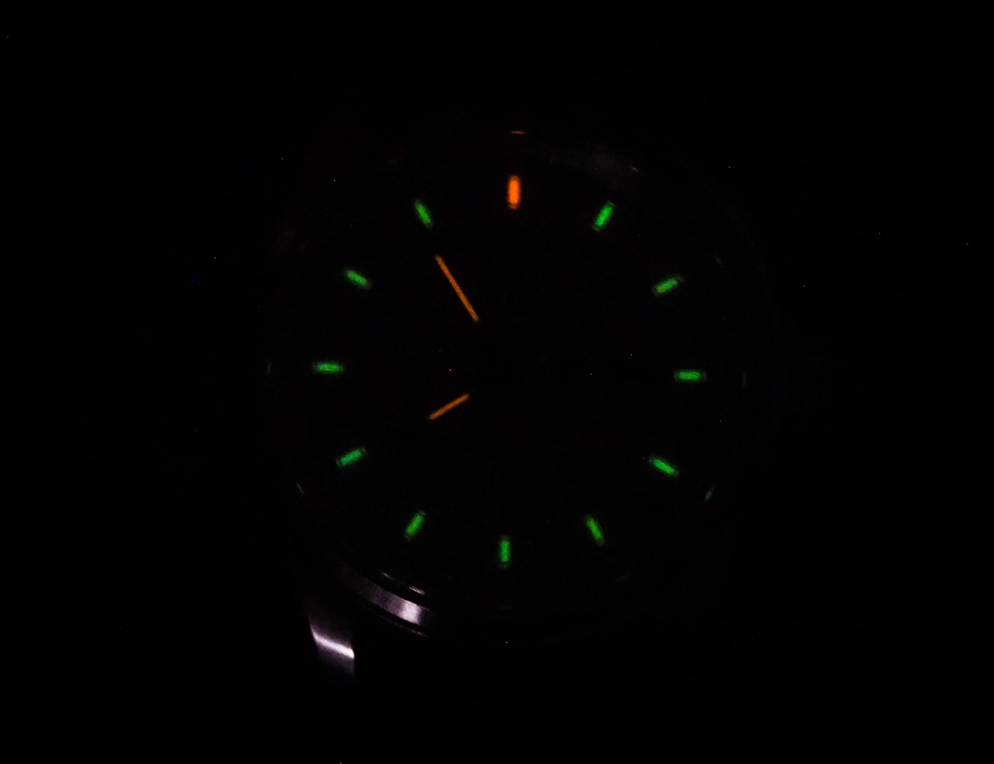Wow! The watch’s lume was so bright that I could light my way. I found the toilet, and then returned to my bed, illuminated only by the glow of the watch.