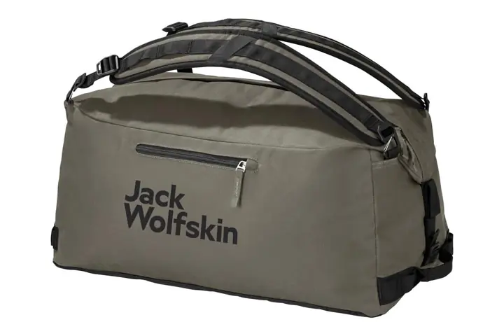 | Jack Wolfskin Traveltopia 45 Liter Duffel Bag | 22.5” x 12.5” x 12” | 1 lb., 12 oz. | 45L | 600D poly | Removable straps, exterior compression, inner mesh pockets |