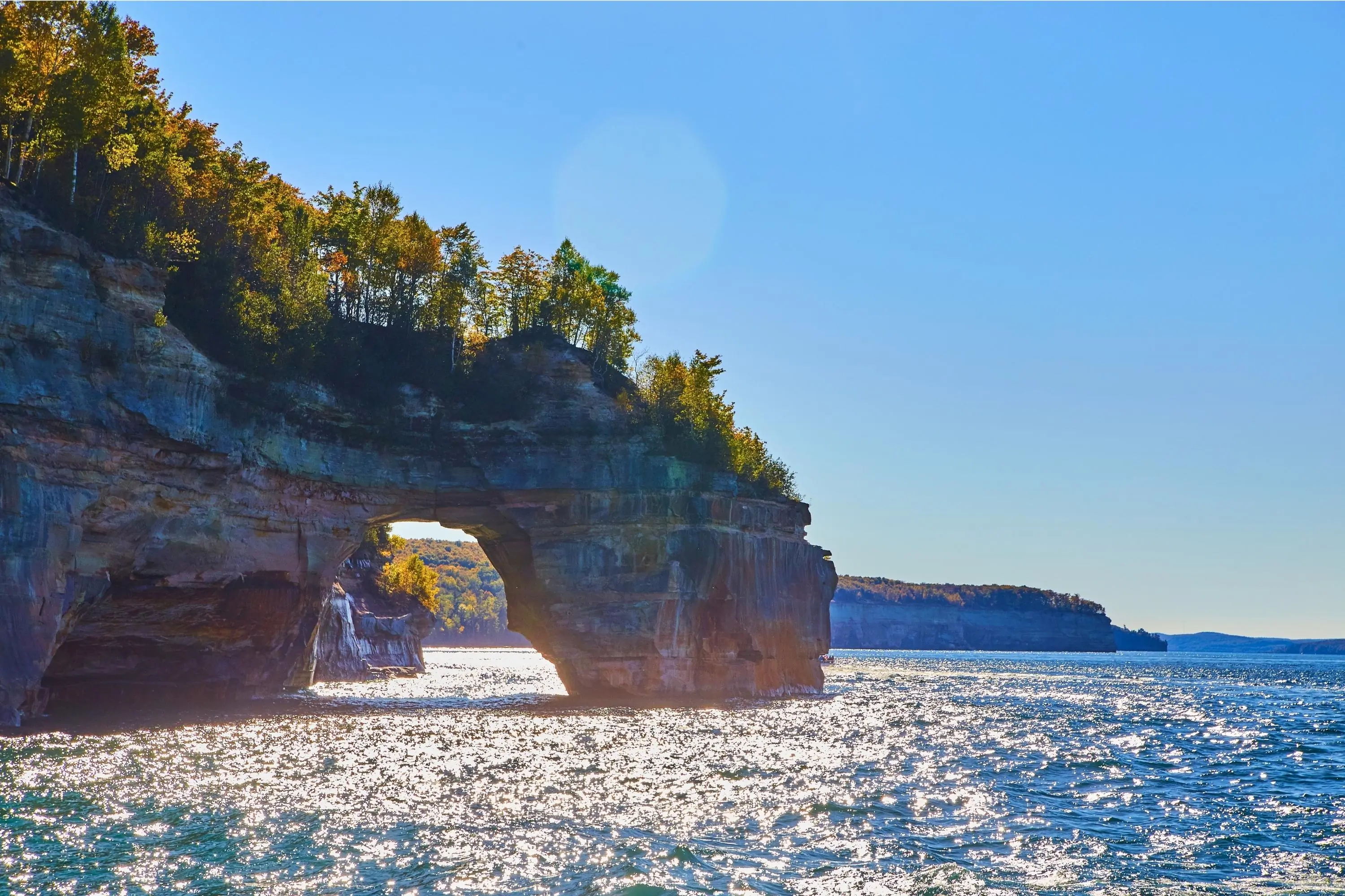 To fully experience the magic of Lake Superior, carve out some time to get out on the water. At Pictured Rocks National Lakeshore in Michigan and the Apostle Islands in Wisconsin, paddle into hidden sea caves and take in views of sandstone cliffs along the shore.