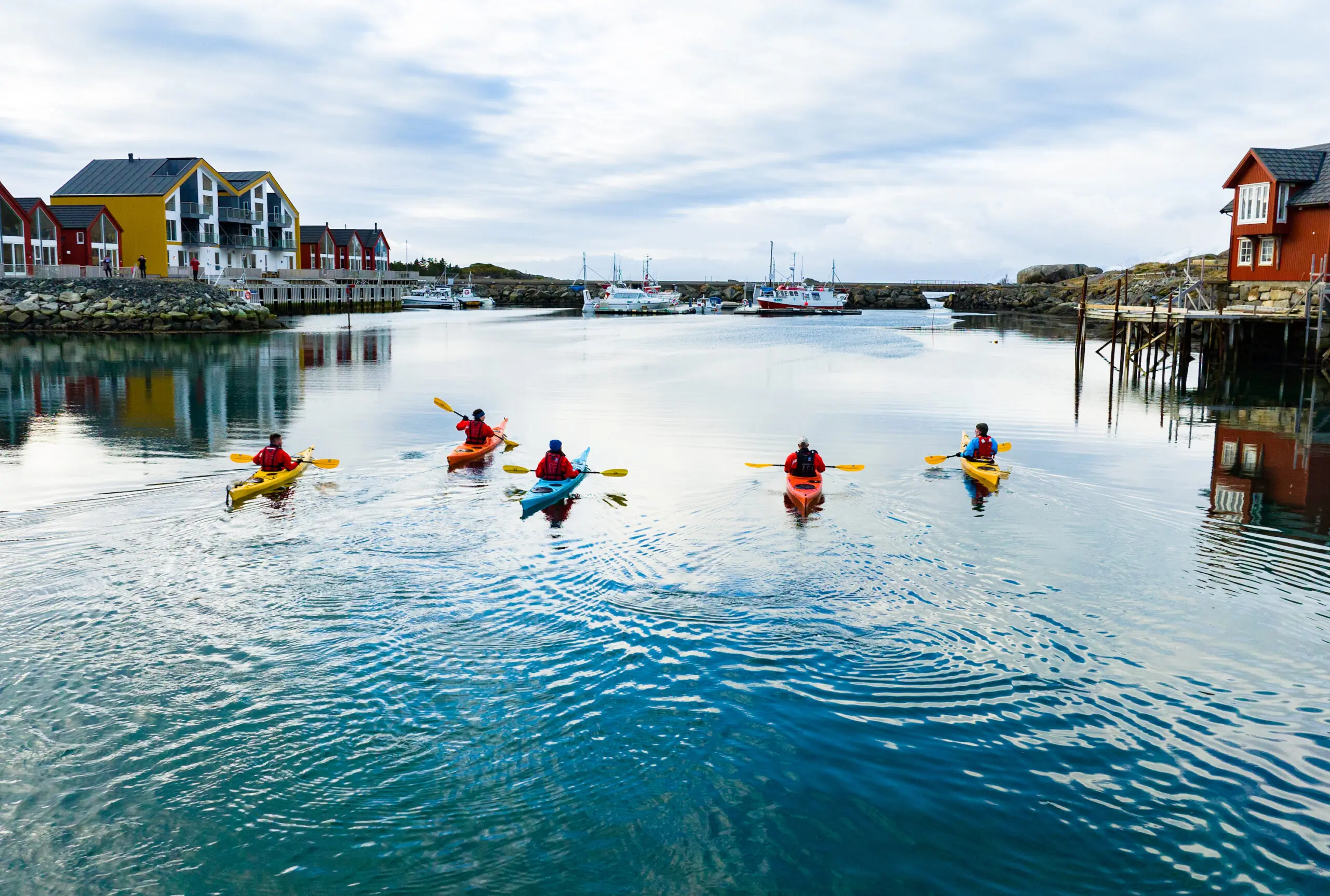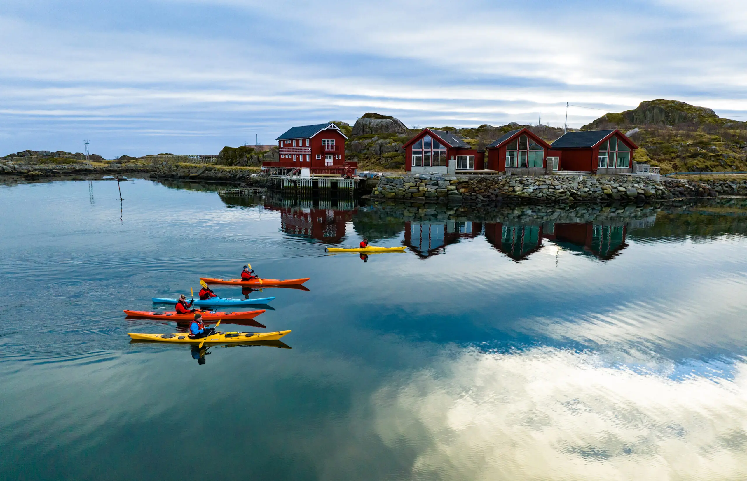 On Day 3, we departed our cozy Skårungen Lodge in Kabelvåg, and woke at the beautiful Hattvika Lodge in Ballstad. A paddle across the bay, through narrow gaps of rocks and along the rugged shoreline, was in order. We geared up with our base and midlayers, and then stepped into a full dry suit to protect against the possible sea spray and any accidental immersions.