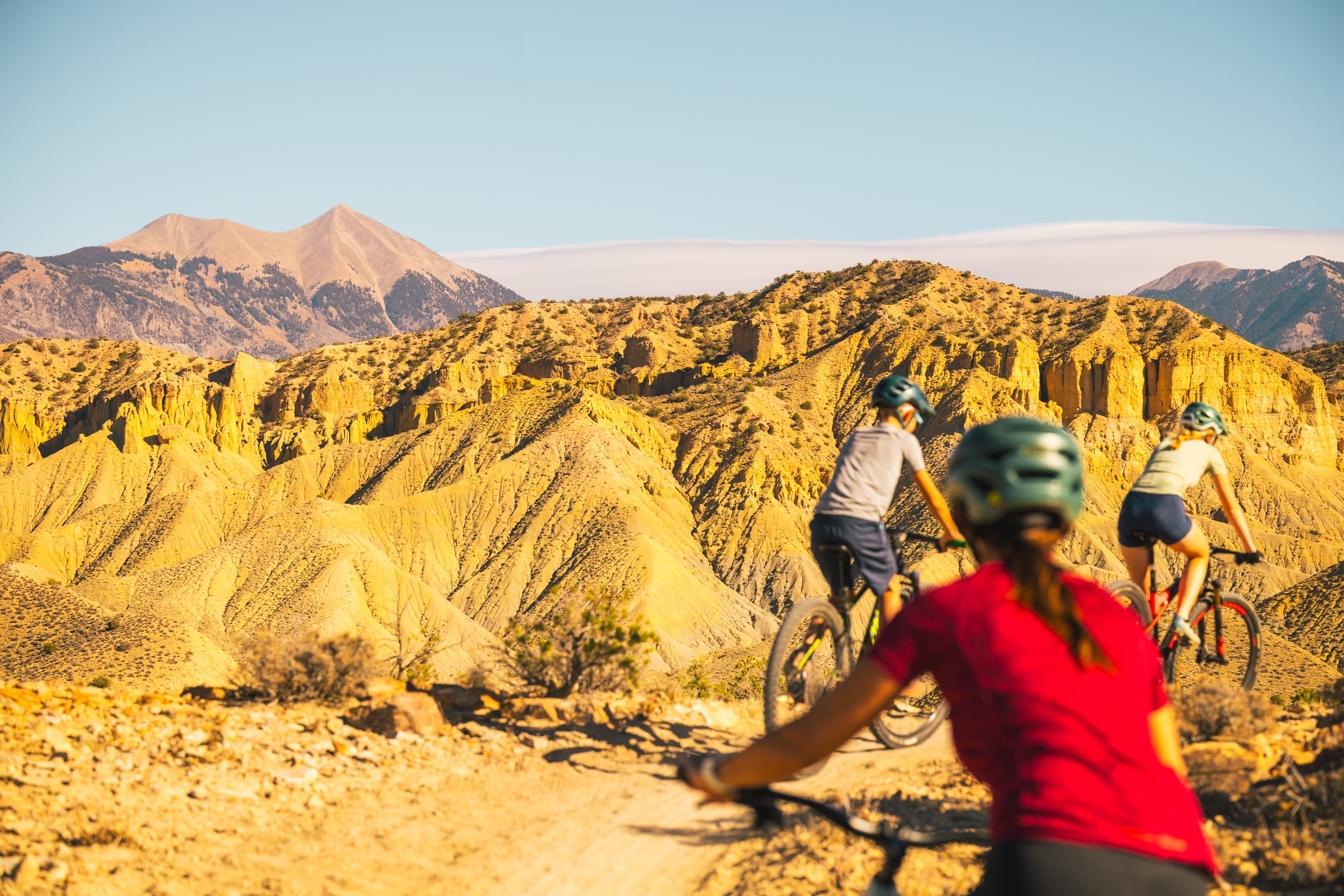 If you’re not up for black diamond–level mountain biking, pivot to Dead Horse Point State Park for easier terrain along the Intrepid Trail System, with canyon vistas that rival the big-name park. Or, take in the big views and beginner-friendly loops of the new Mud Springs Trail System, 15 minutes south of Moab (pictured above).