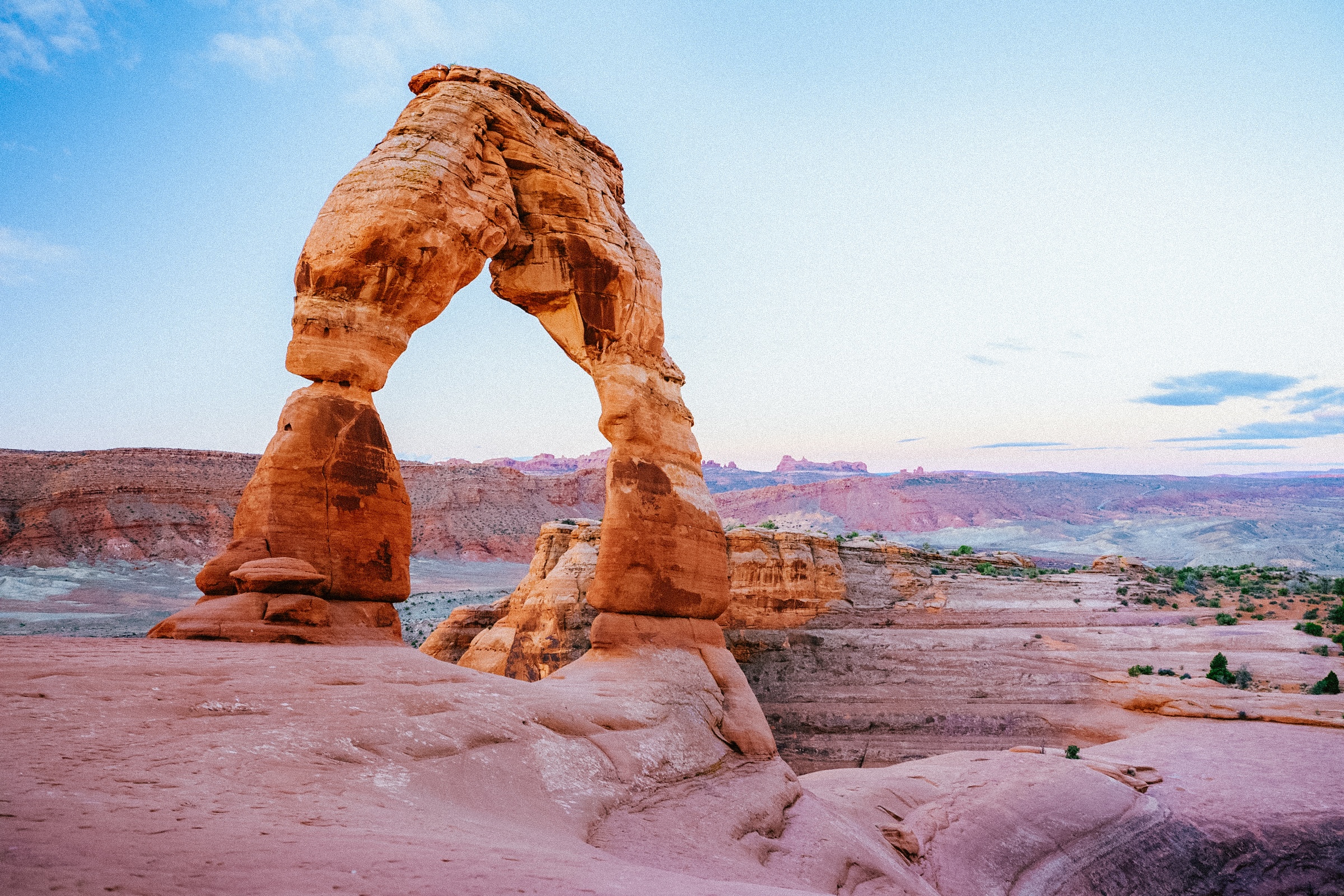 Delicate Arch in Arches National Park is undoubtedly the most iconic natural arch in the nation, and the 3.2-mile round-trip hike is practically a requirement. Anticipation builds as you approach the arch on foot, not seeing the formation up close until you’re practically on top of it for the ultimate reveal.