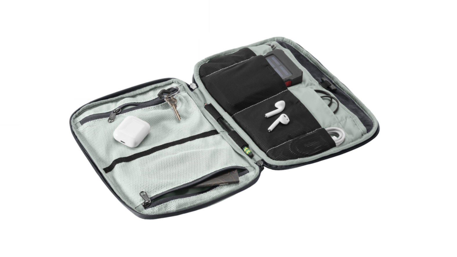 Whether you’re traveling for work or pleasure, the E-Tools Organizer Pro can tame the chaos of modern electronics and their companion cords, chargers, and more. The organizer unzips to lie open and flat so you can see everything inside. It has stretch mesh pouches to hold accessories like power banks and elastic bands to secure other loose cordage.
