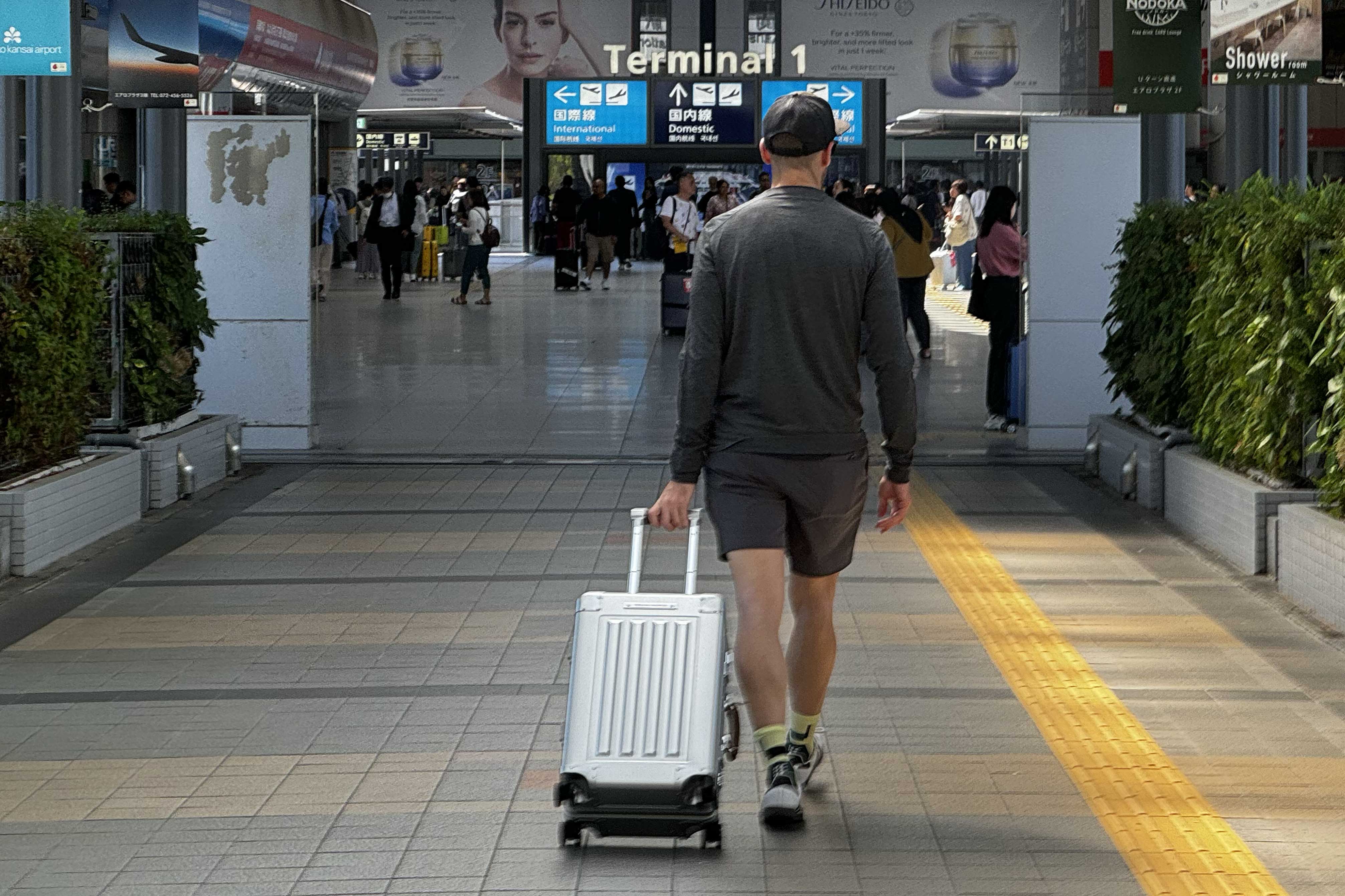 Way back in the plane, I was the last to walk out of coach. I landed in Osaka, Japan, running from the rising sun for the last 12 hours. “Now that’s a nice carry-on!” the flight attendant piped. “Expensive!”
