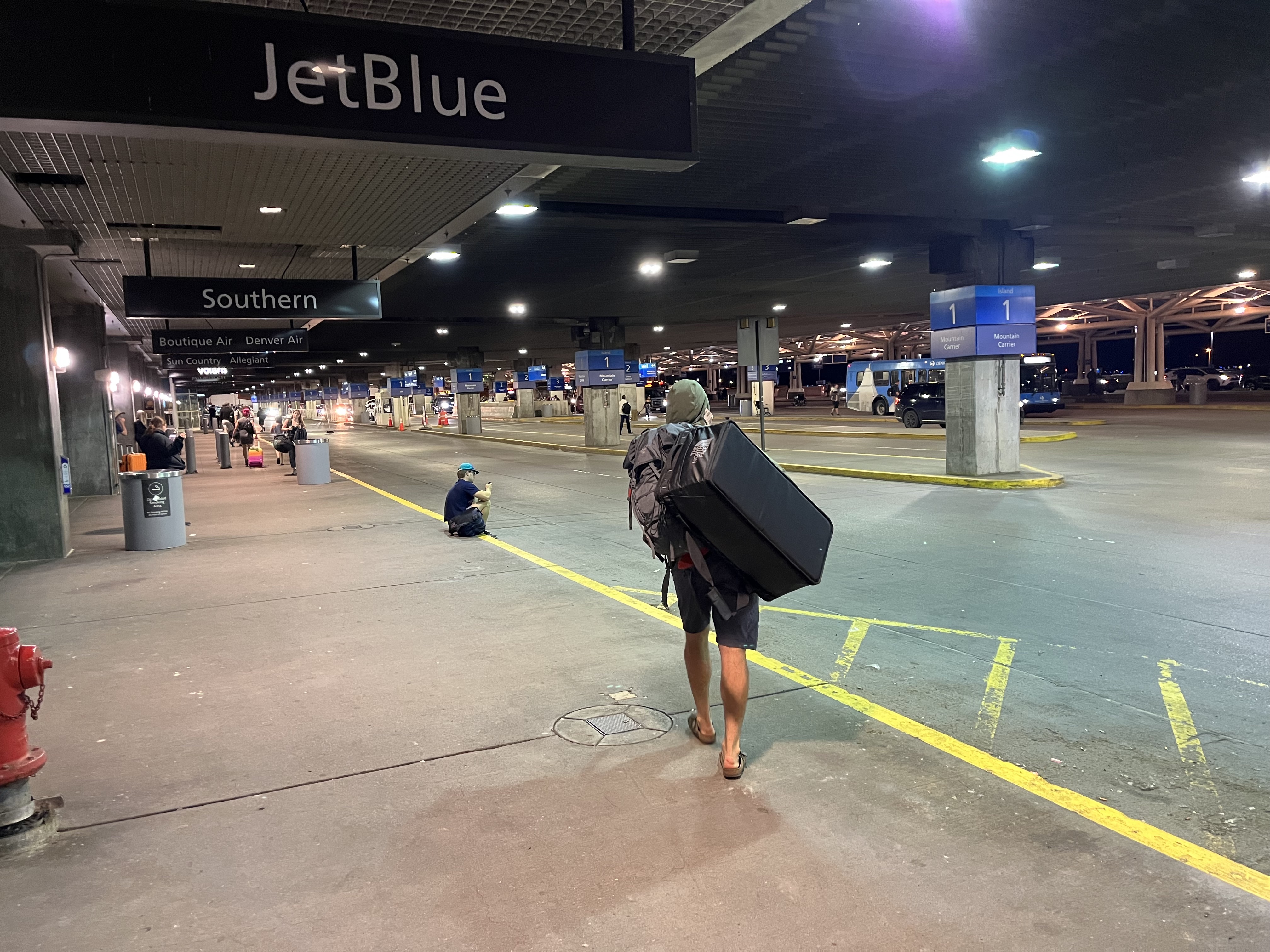 From the Pikes Peak lot, Quinn and I started hustling toward the shuttle stop. That’s when I knew something was awry. At first, I was carrying my TNF Gear Box with the main straps. But at a hair shy of 50 pounds, it wasn’t easy. I held it out to the side but it kept doinking against the outside of my knee as I shuffled.