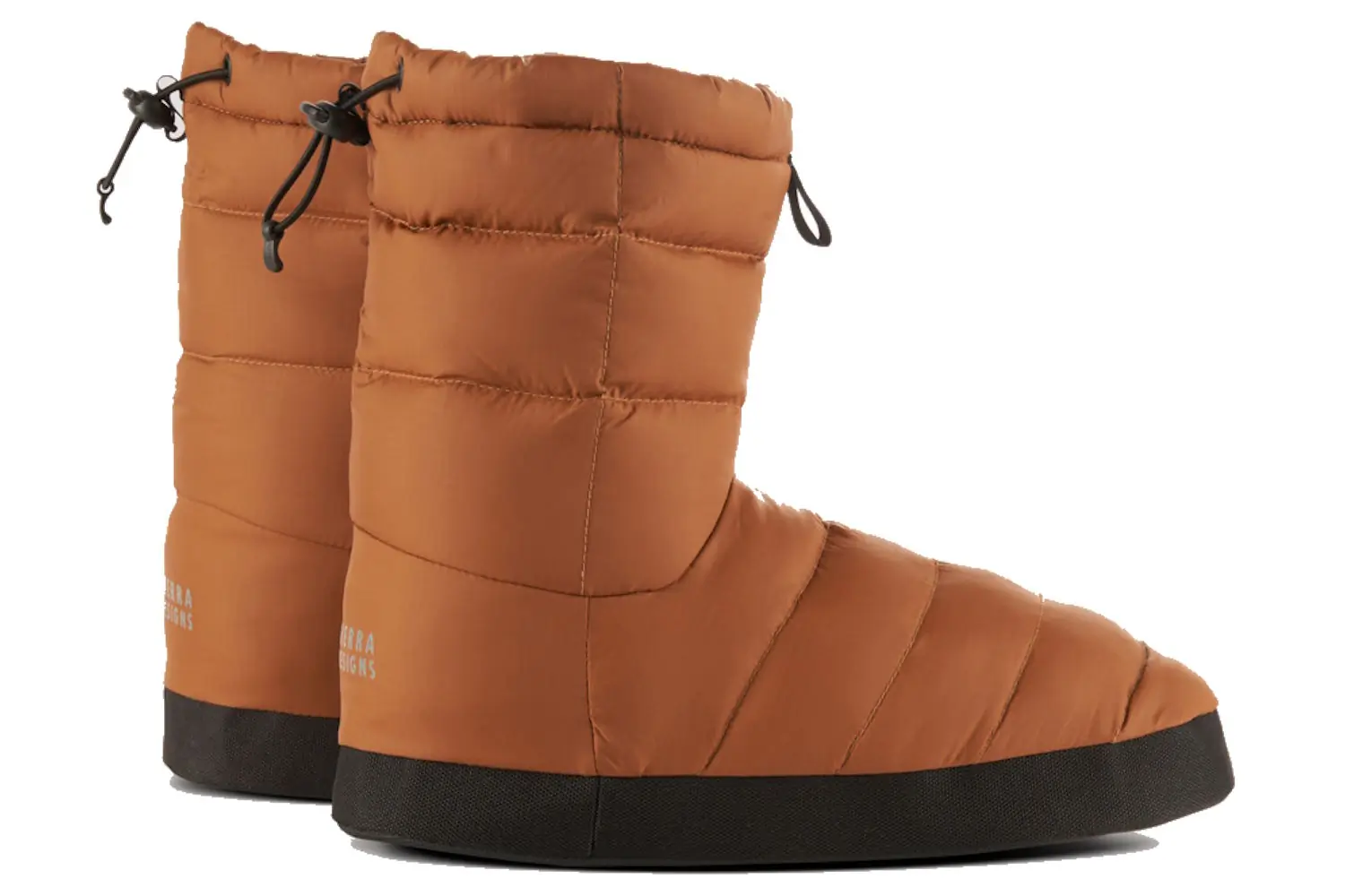 Down booties are a type of footwear. To put it simply, their whole job is to provide insulating warmth during the winter months. Just like a down jacket would keep your core warm or puffy pants would keep your legs warm, booties keep your feet warm.